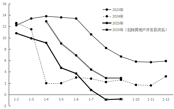 图1 2023—2025年甘肃固定资产投资月度累计增速(%)