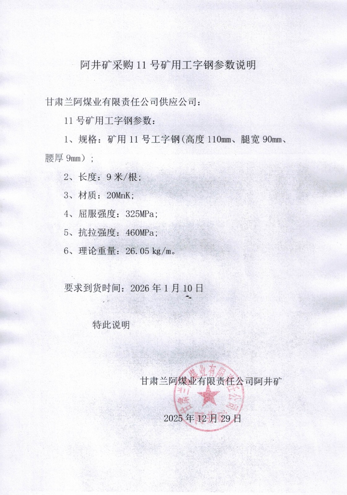 甘肃兰阿煤业有限责任公司2026年第一批次设备物资自主招标采购项目招标公告