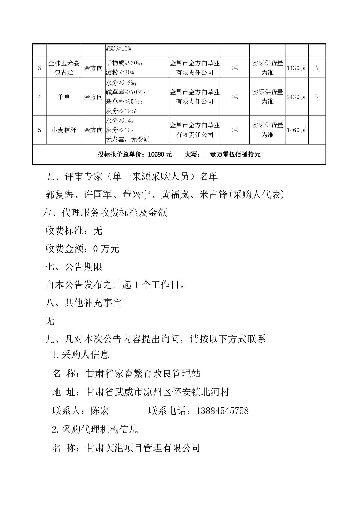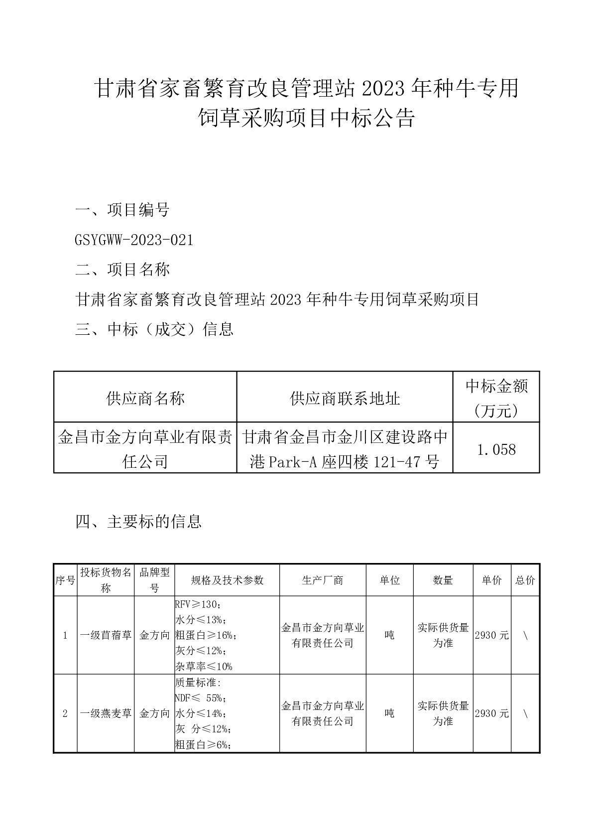 甘肃省家畜繁育改良管理站2023年种牛专用饲草采购项目