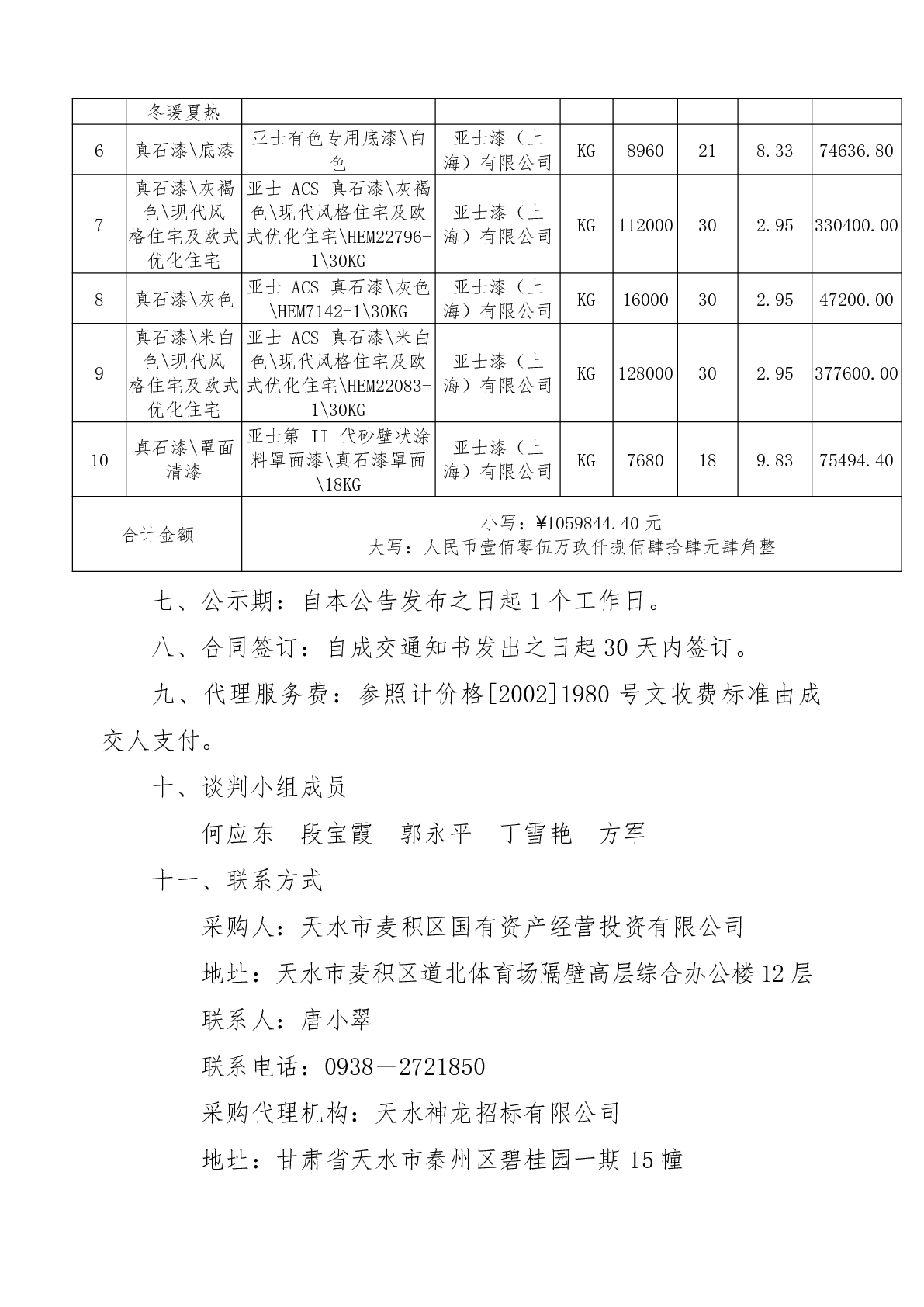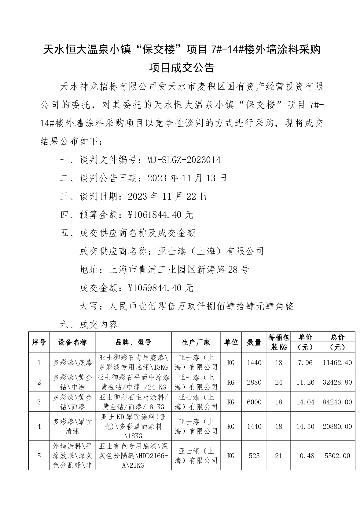 天水恒大温泉小镇“保交楼”项目7#-14#楼外墙涂料采购项目成交公告