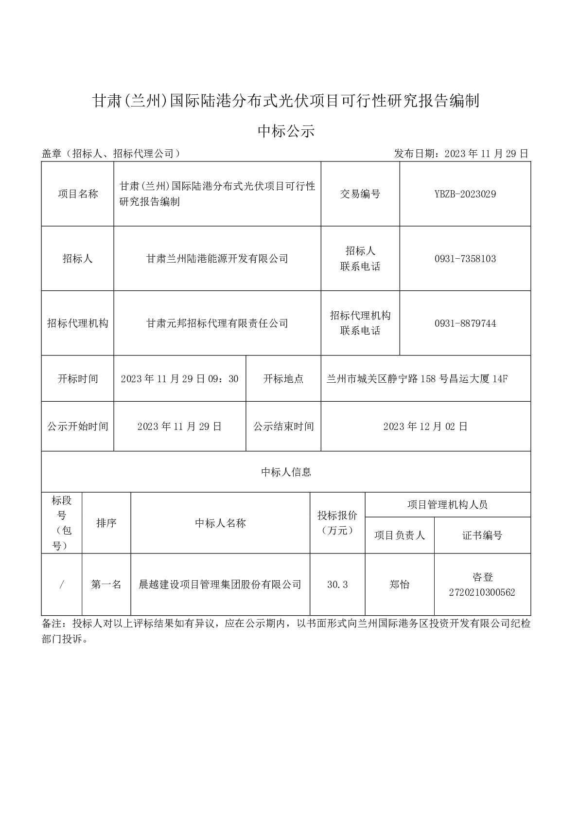 甘肃(兰州)国际陆港分布式光伏项目可行性研究报告编制中标公示