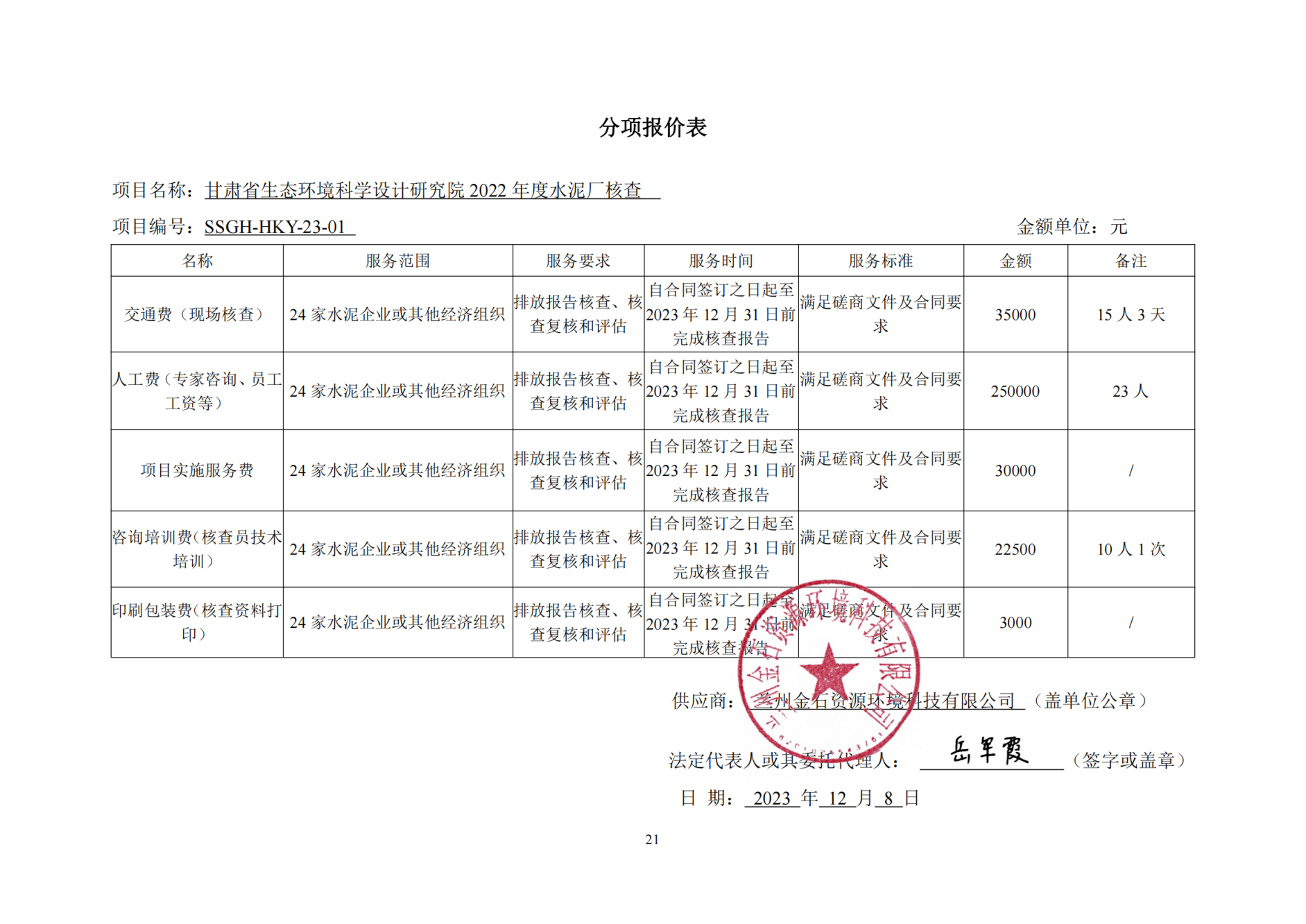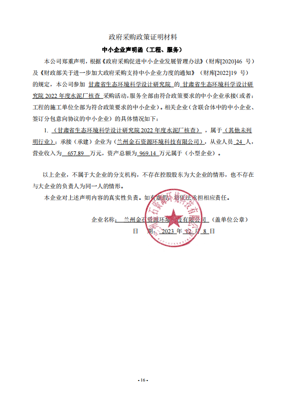 兰州金石资源环境科技有限公司 | 甘肃省生态环境科学设计研究院2022年度水泥厂核查 | 详见附件 | 详见附件 | 详见附件 | 详见附件 |