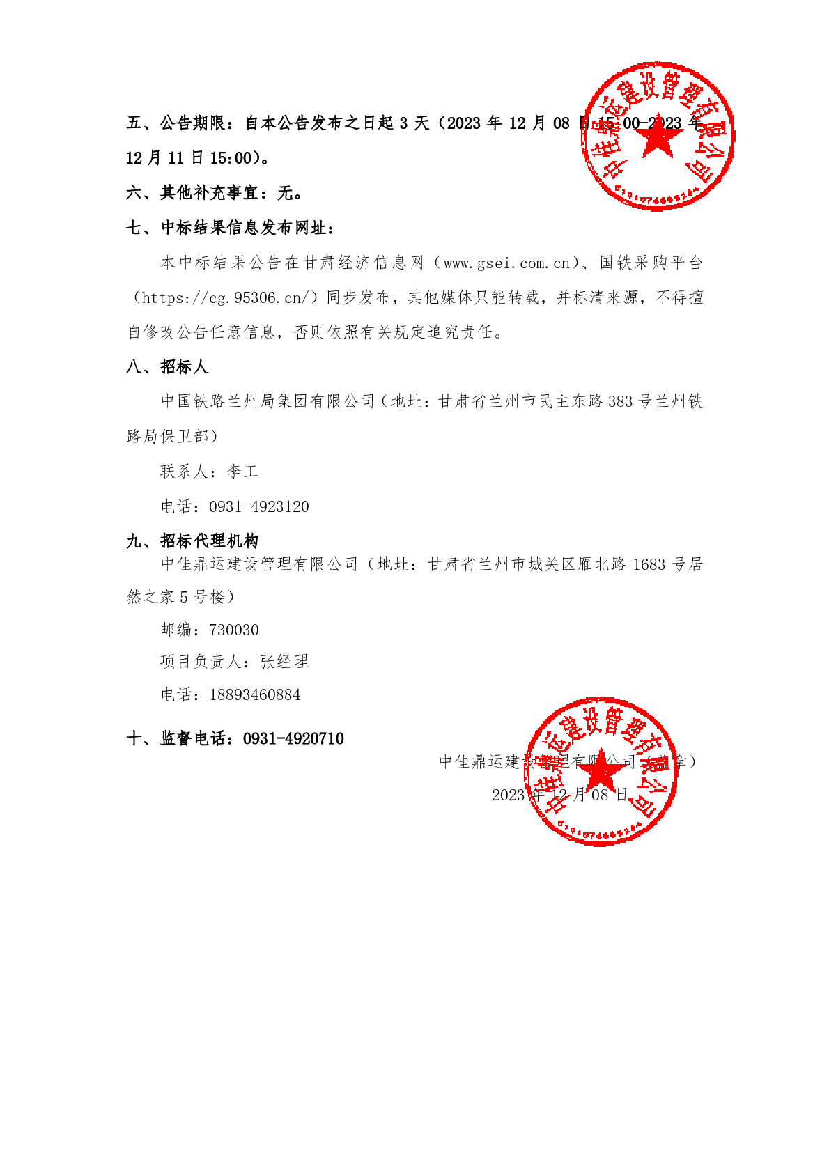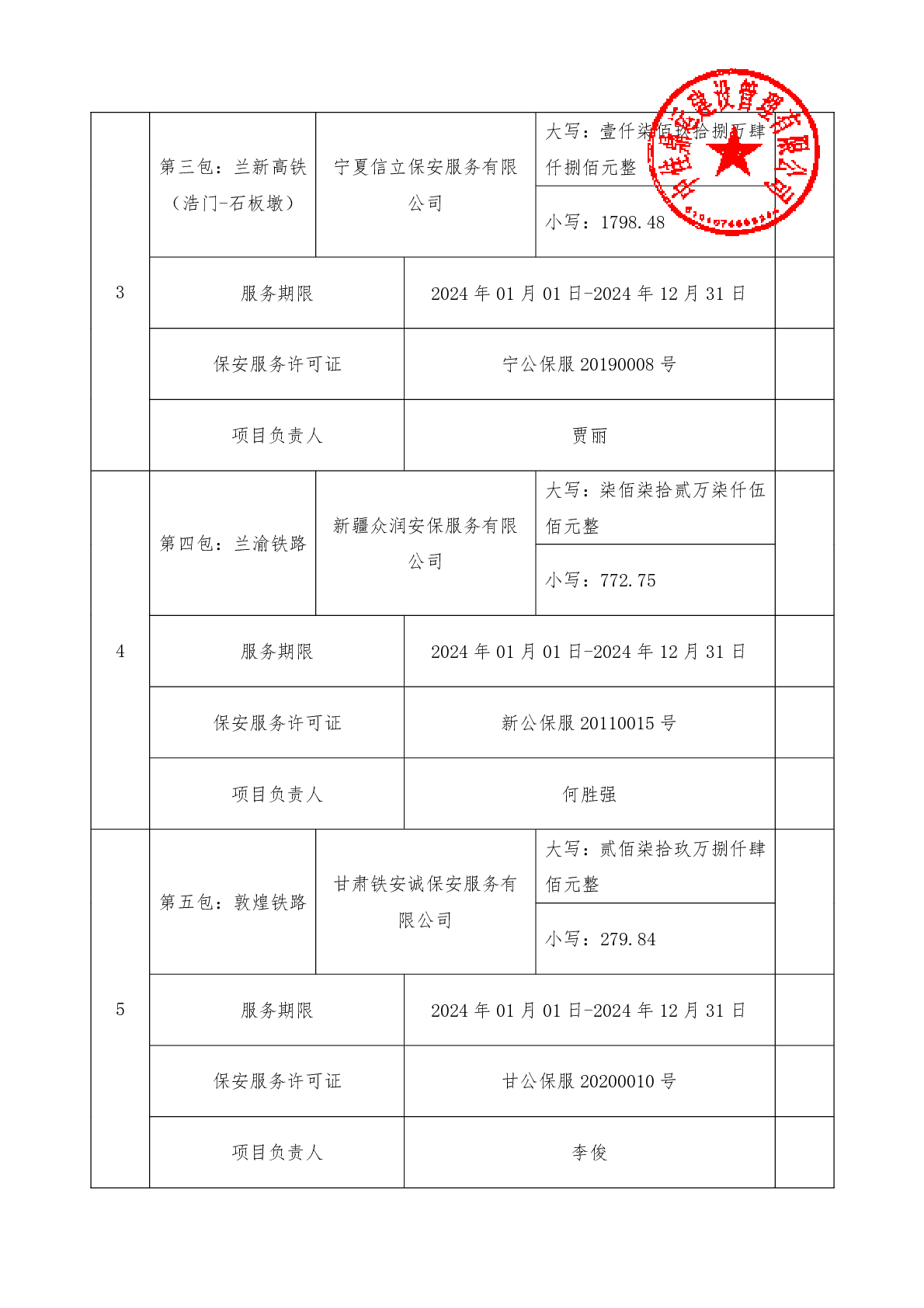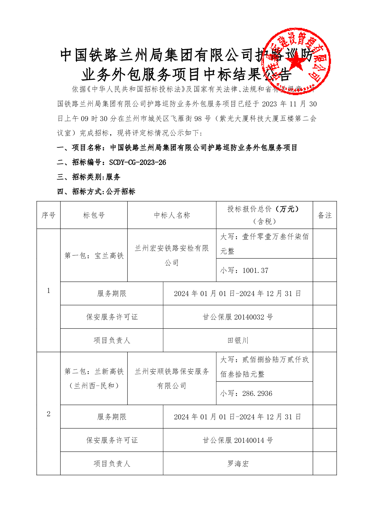 中国铁路兰州局集团有限公司护路巡防业务外包服务项目中标结果公告