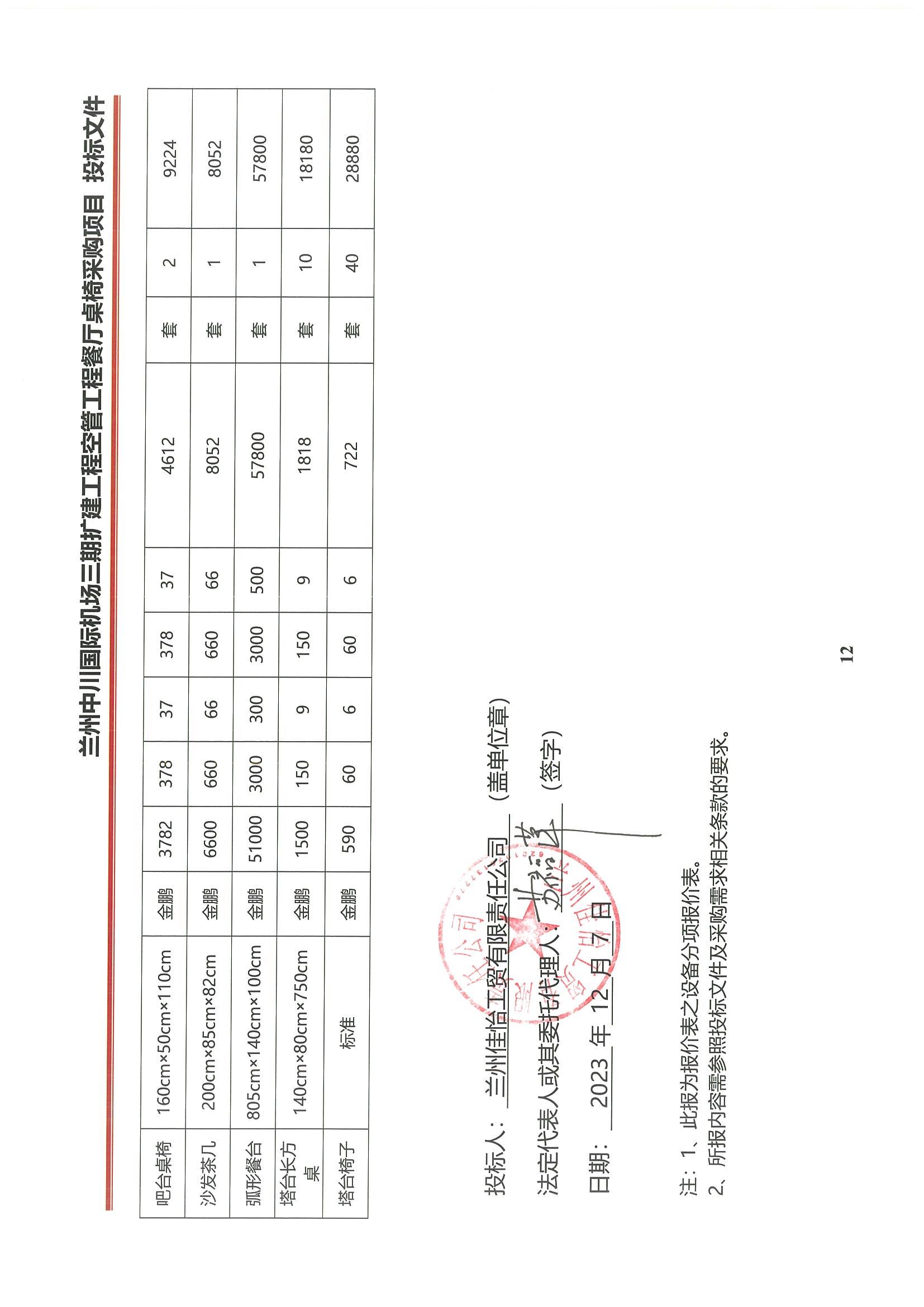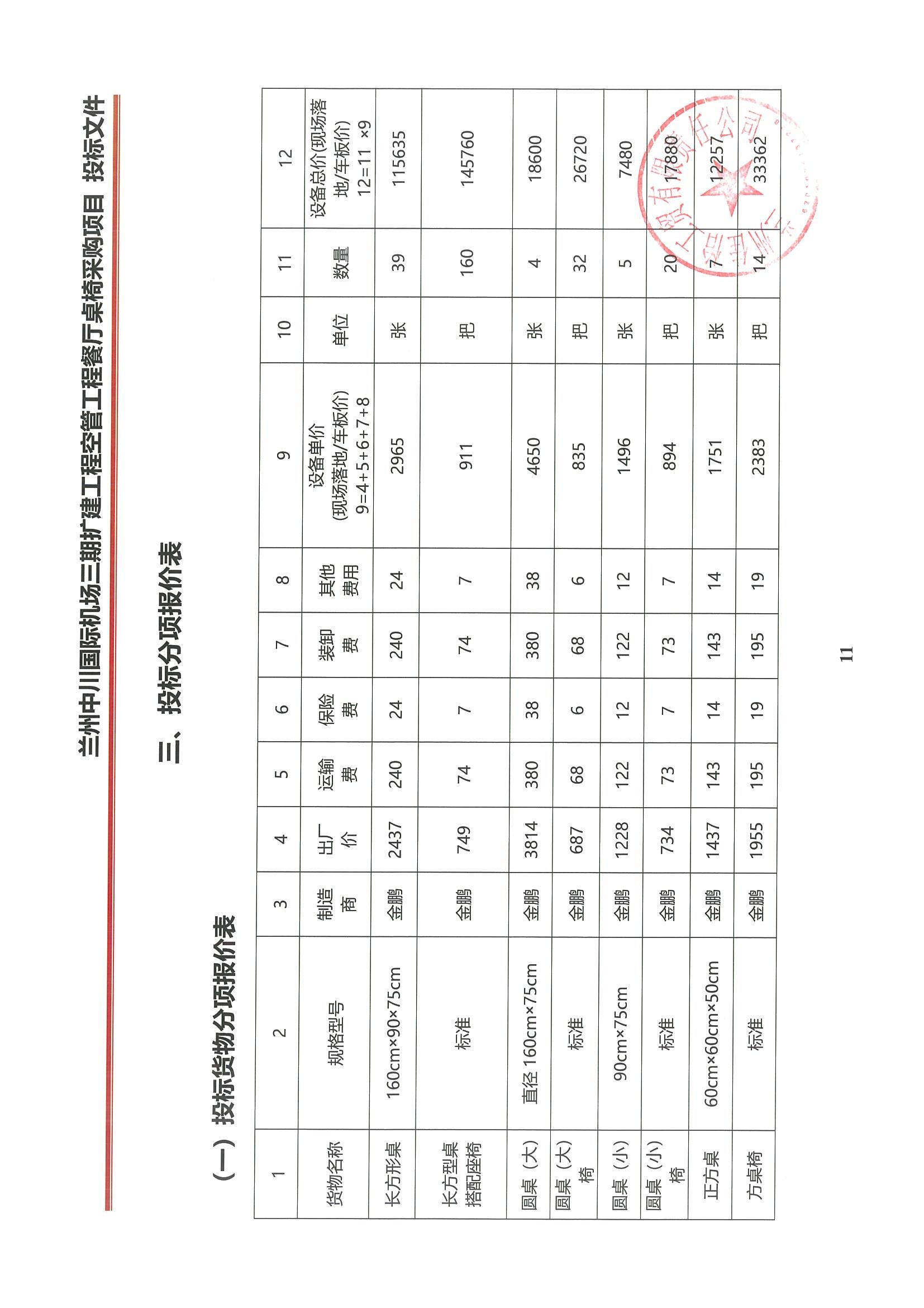 二、项目名称:兰州中川国际机场三期扩建工程空管工程餐厅桌椅采购