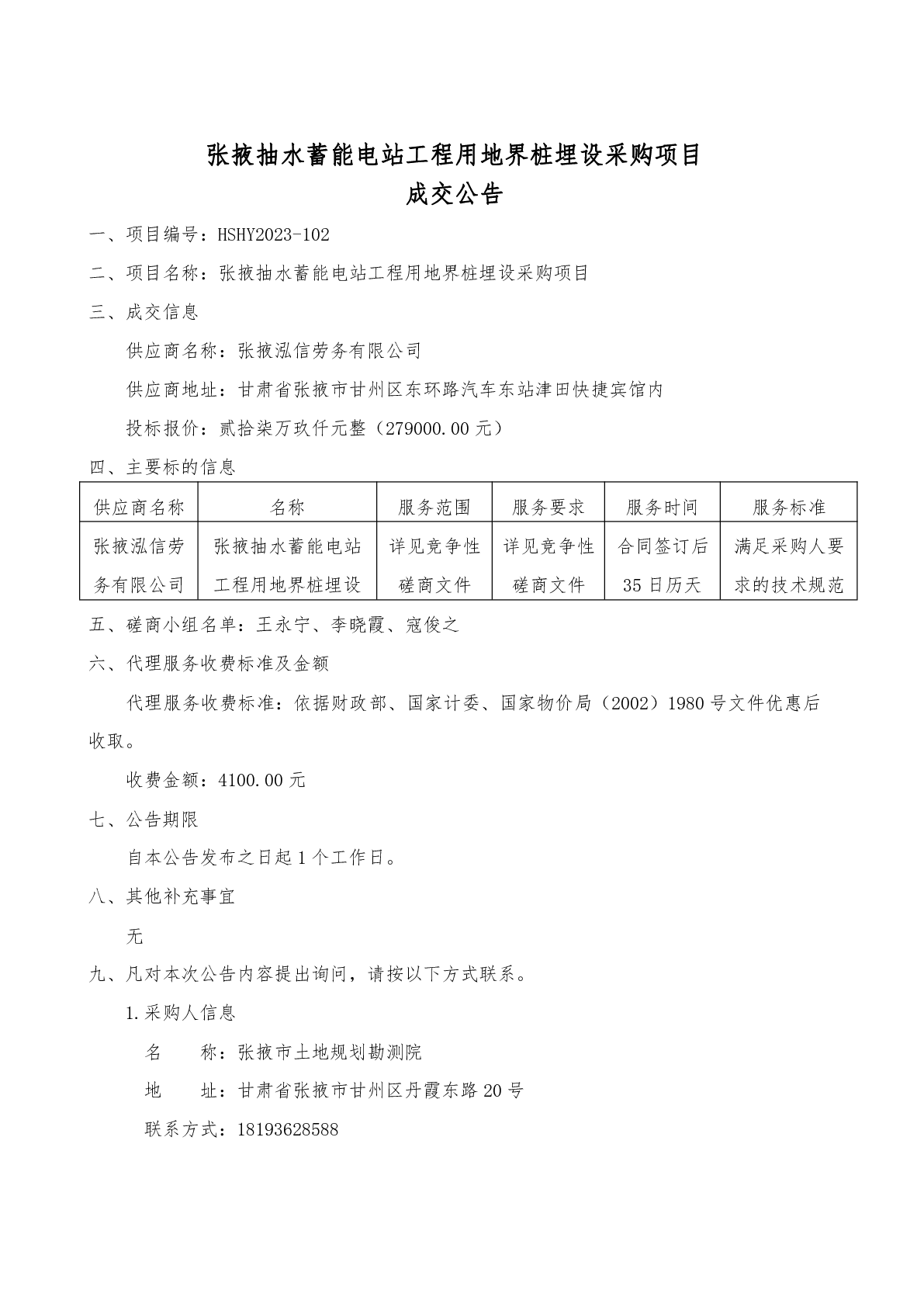 张掖抽水蓄能电站工程用地界桩埋设采购项目成交公告