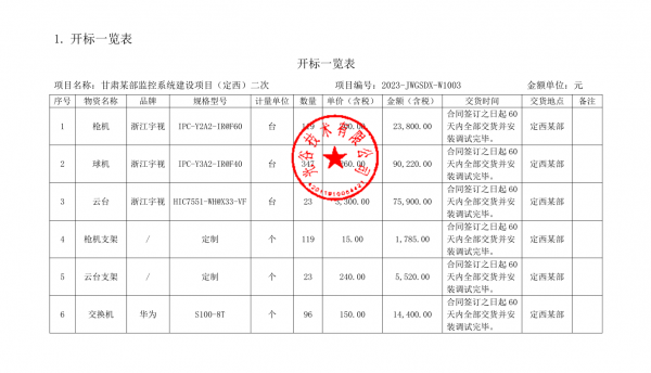 甘肃中铁国际项目管理咨询有限公司受甘肃某部的委托,对甘肃某部监控系统建设项目(定西)二次以公开招标的方式进行采购,评标委员会于2024年1月12日确定评标结果,现将评标结果公布如下: