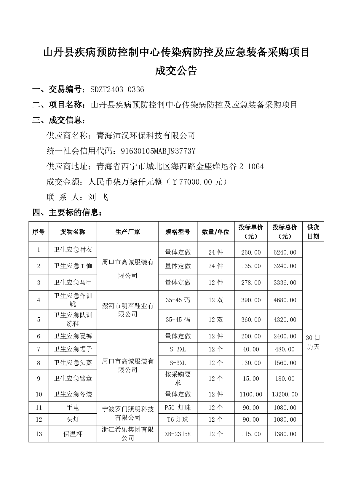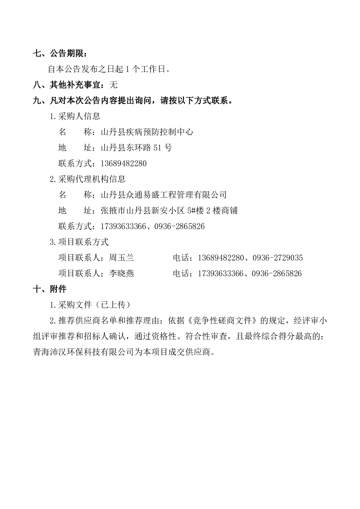 山丹县疾病预防控制中心传染病防控及应急装备采购项目成交公告