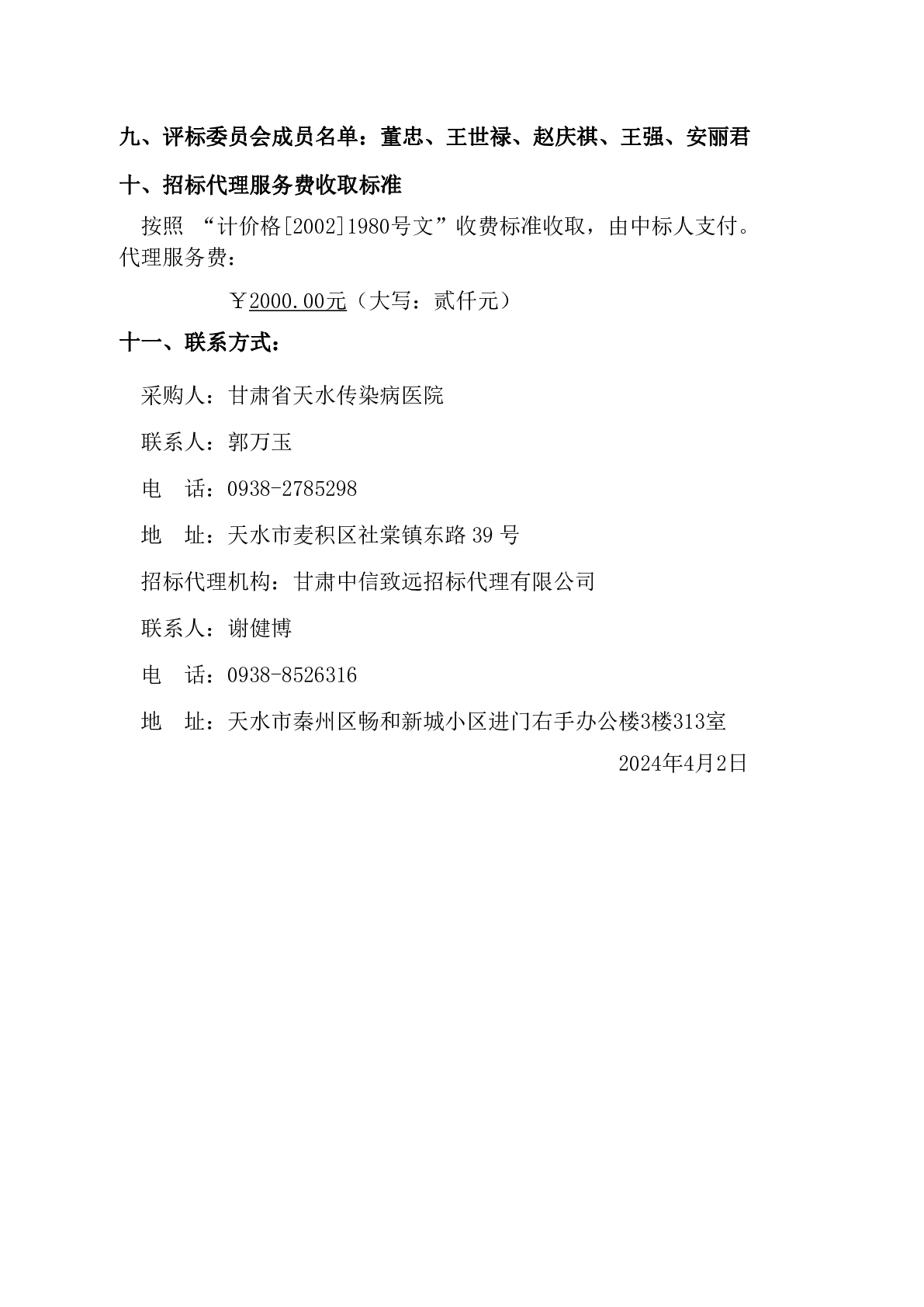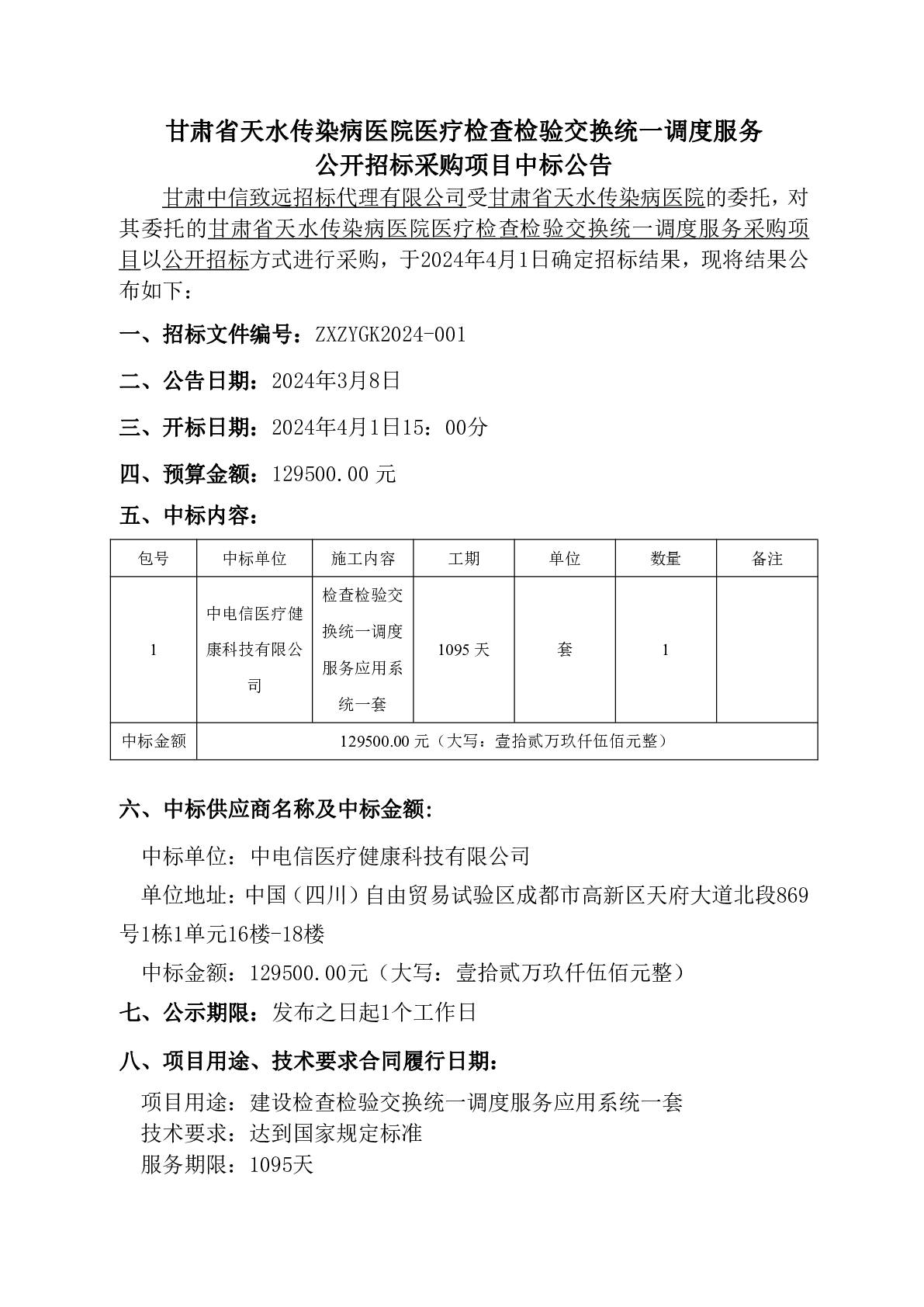 甘肃省天水传染病医院医疗检查检验交换统一调度服务公开招标采购项目