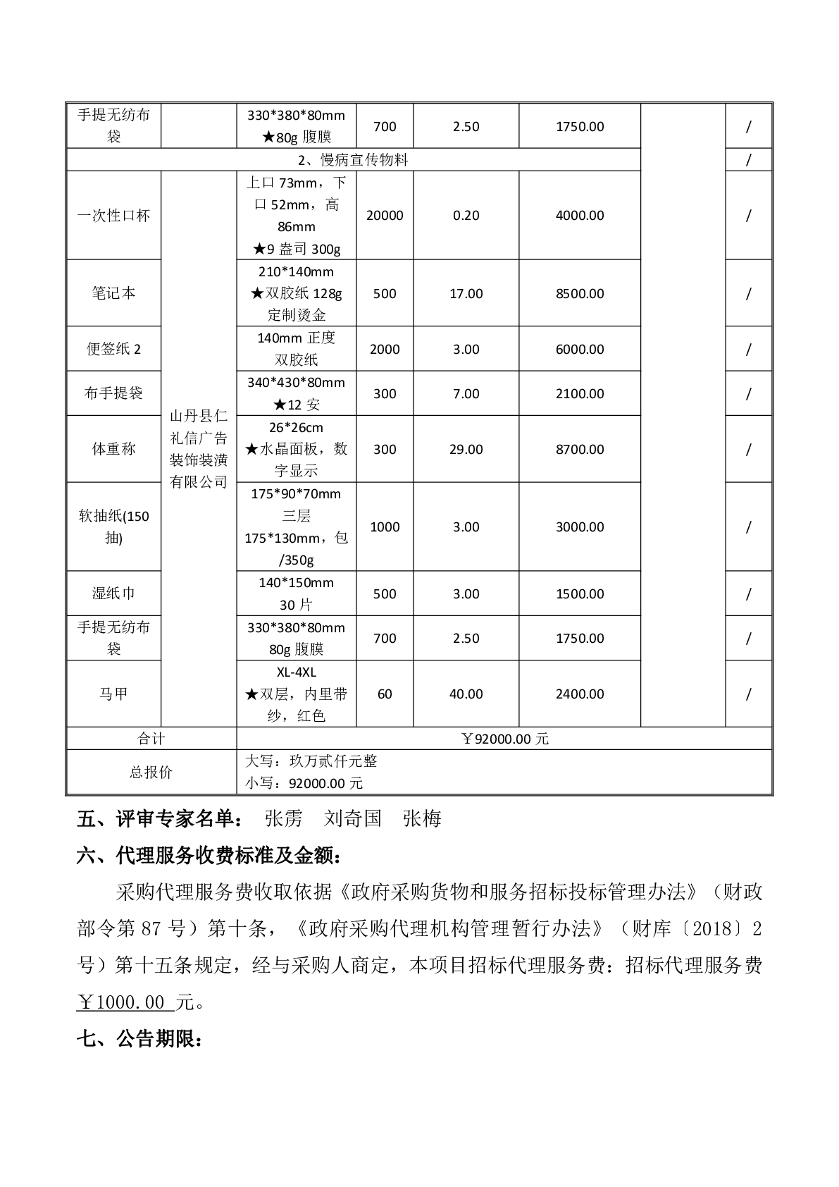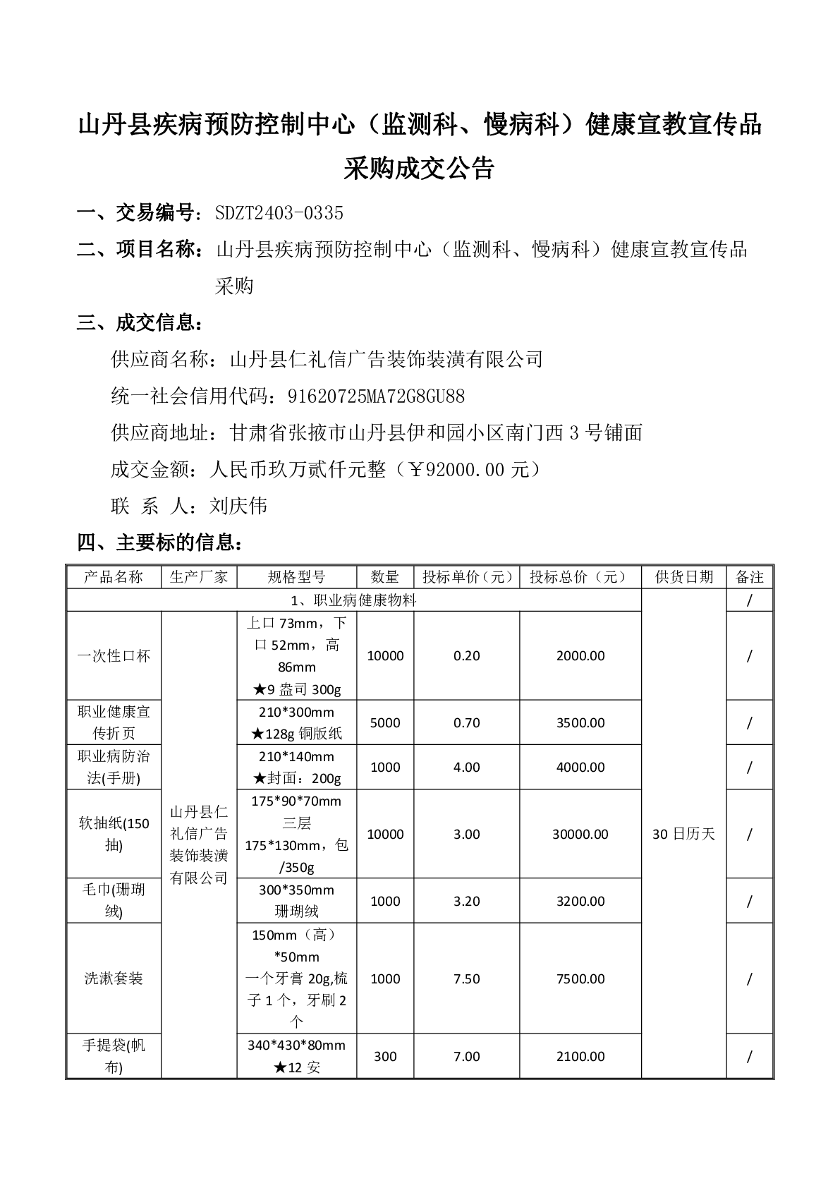 山丹县疾病预防控制中心(监测科、慢病科)健康宣教宣传品采购