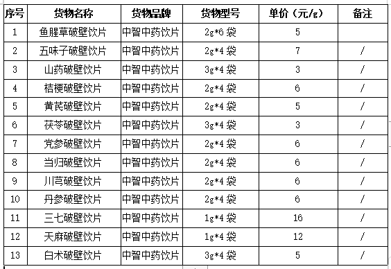1 | 兰州春源医药有限公司 | 中药破壁饮片 | 详见《投标分项报价表》 | 详见《投标分项报价表》 | 详见《投标分项报价表》 |