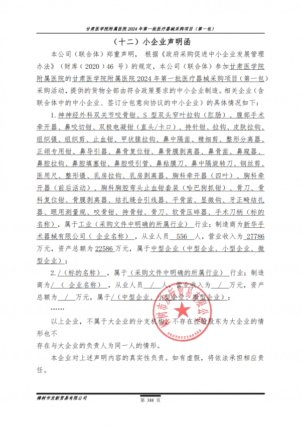 1.《中小企业声明函》1份