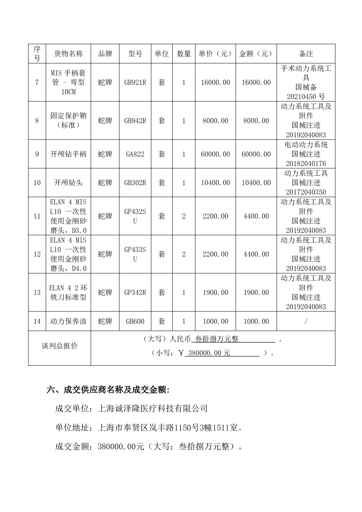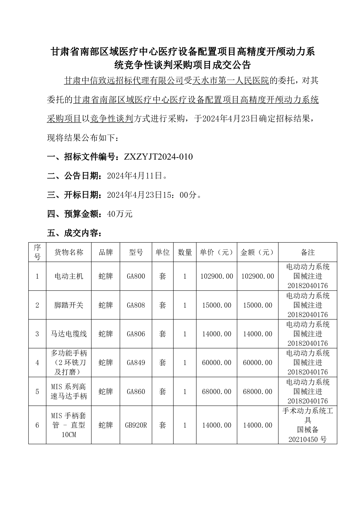 甘肃省南部区域医疗中心医疗设备配置项目高精度开颅动力系统竞争性谈判采购项目成交公告