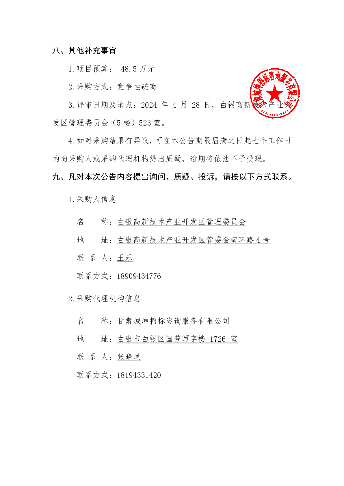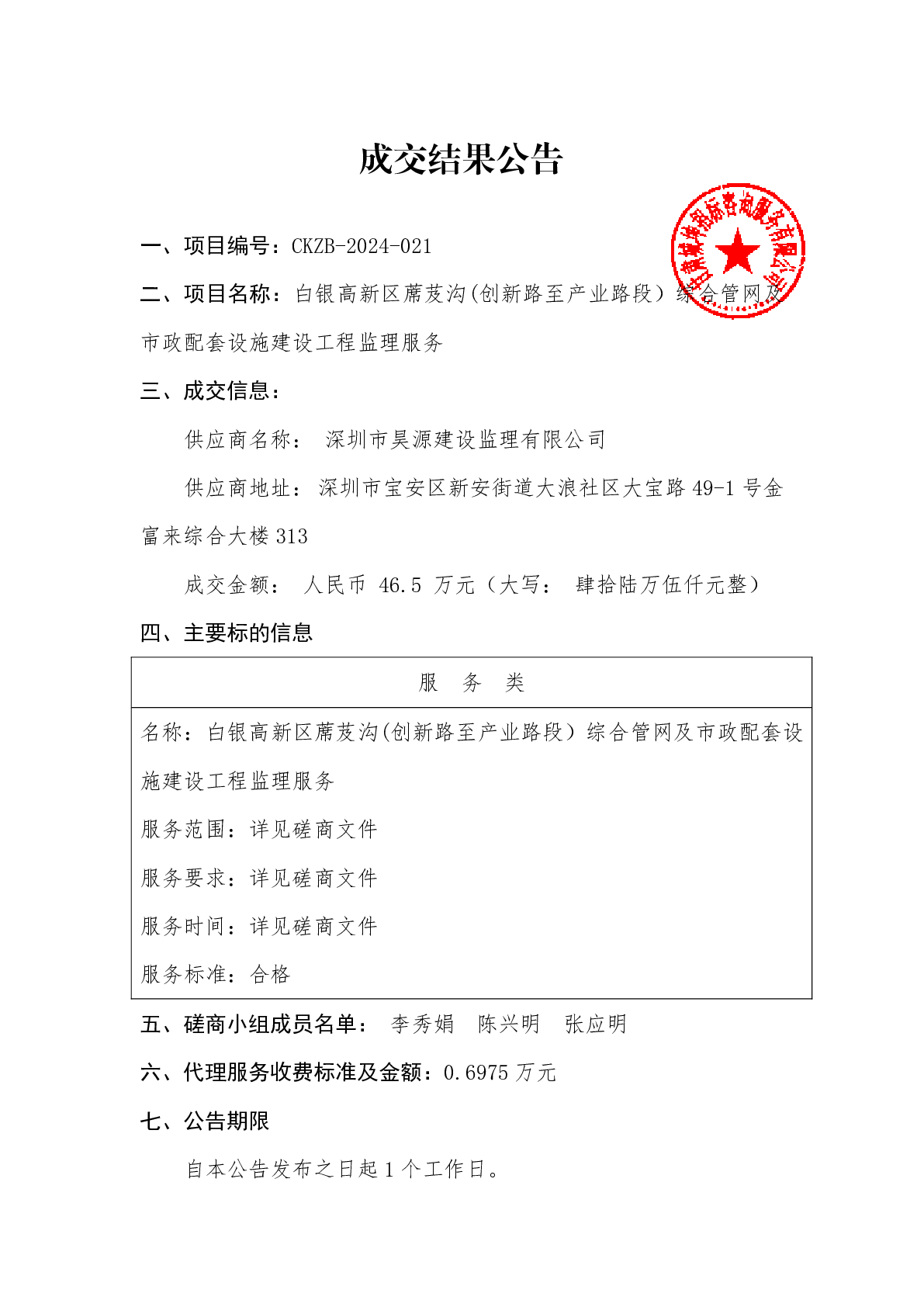 白银高新区蓆芨沟(创新路至产业路段)综合管网及市政配套设施建设工程监理服务