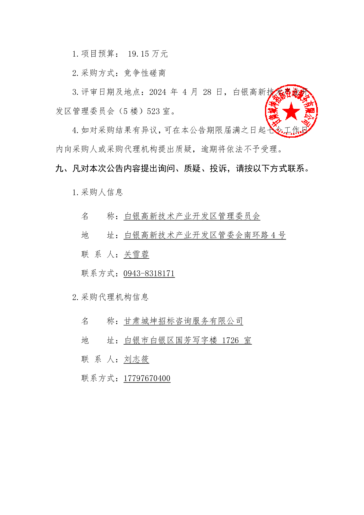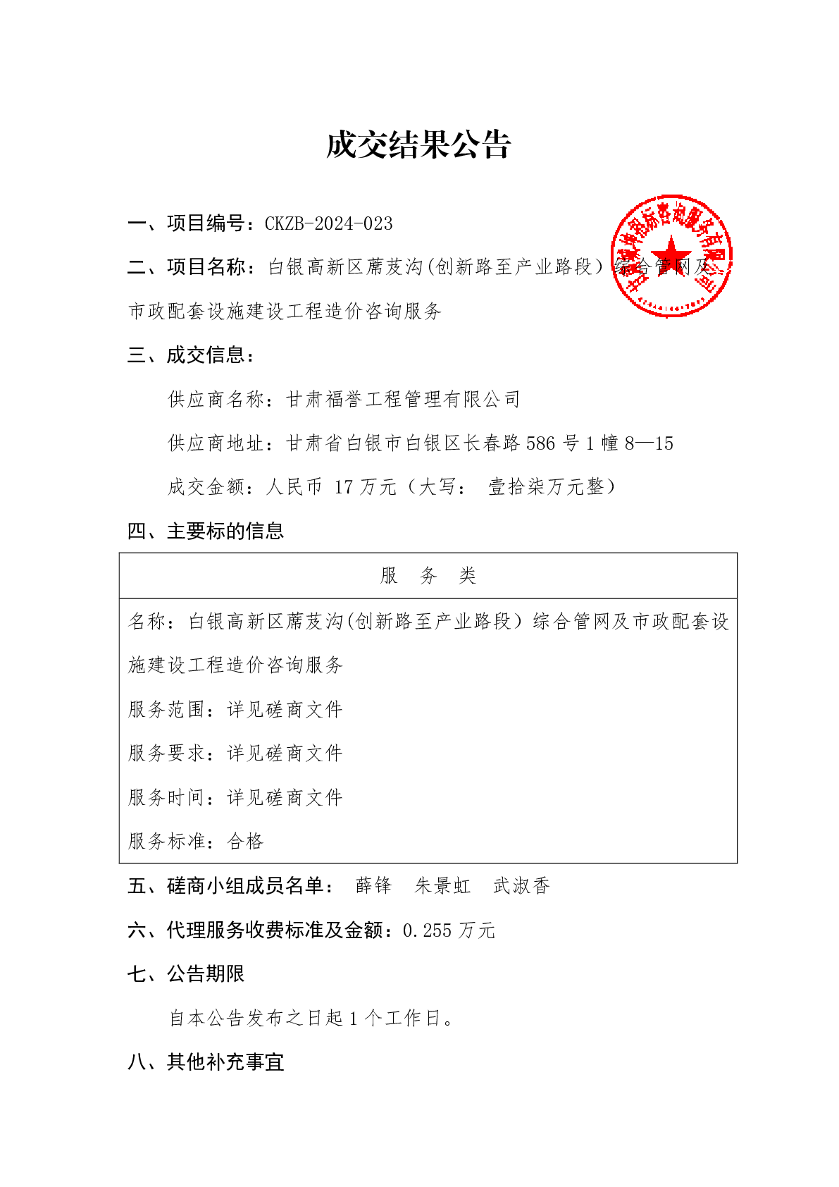 白银高新区蓆芨沟(创新路至产业路段)综合管网及 市政配套设施建设工程造价咨询服务