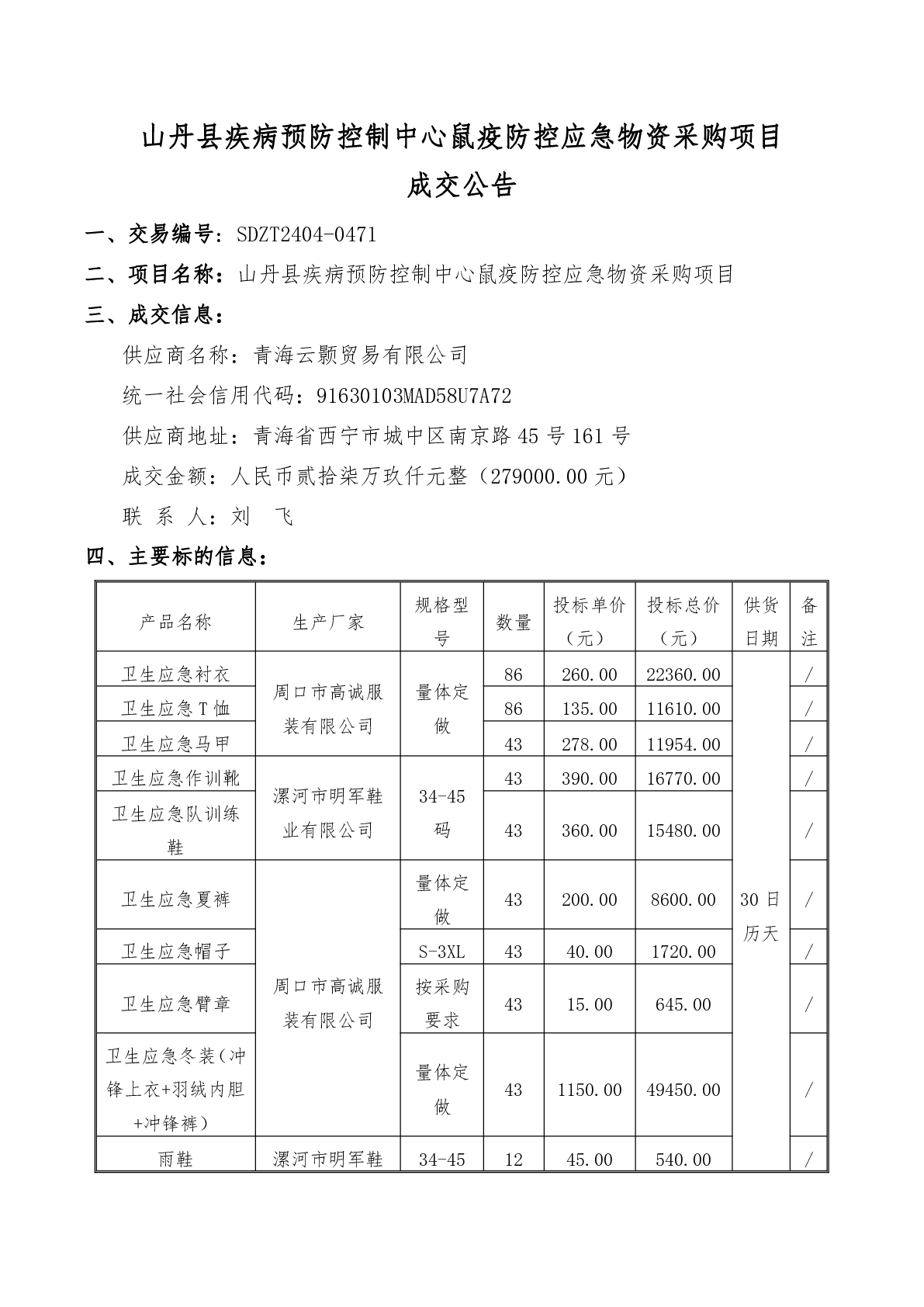 山丹县疾病预防控制中心鼠疫防控应急物资采购项目