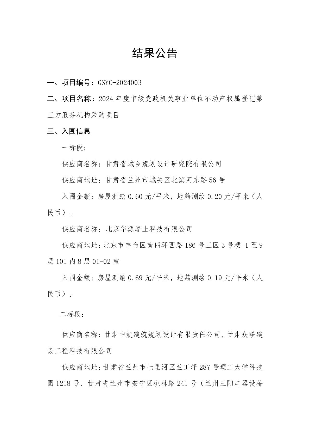 白银市2024年度市级党政机关事业单位不动产权属登记第三方服务机构采购项目成交公告