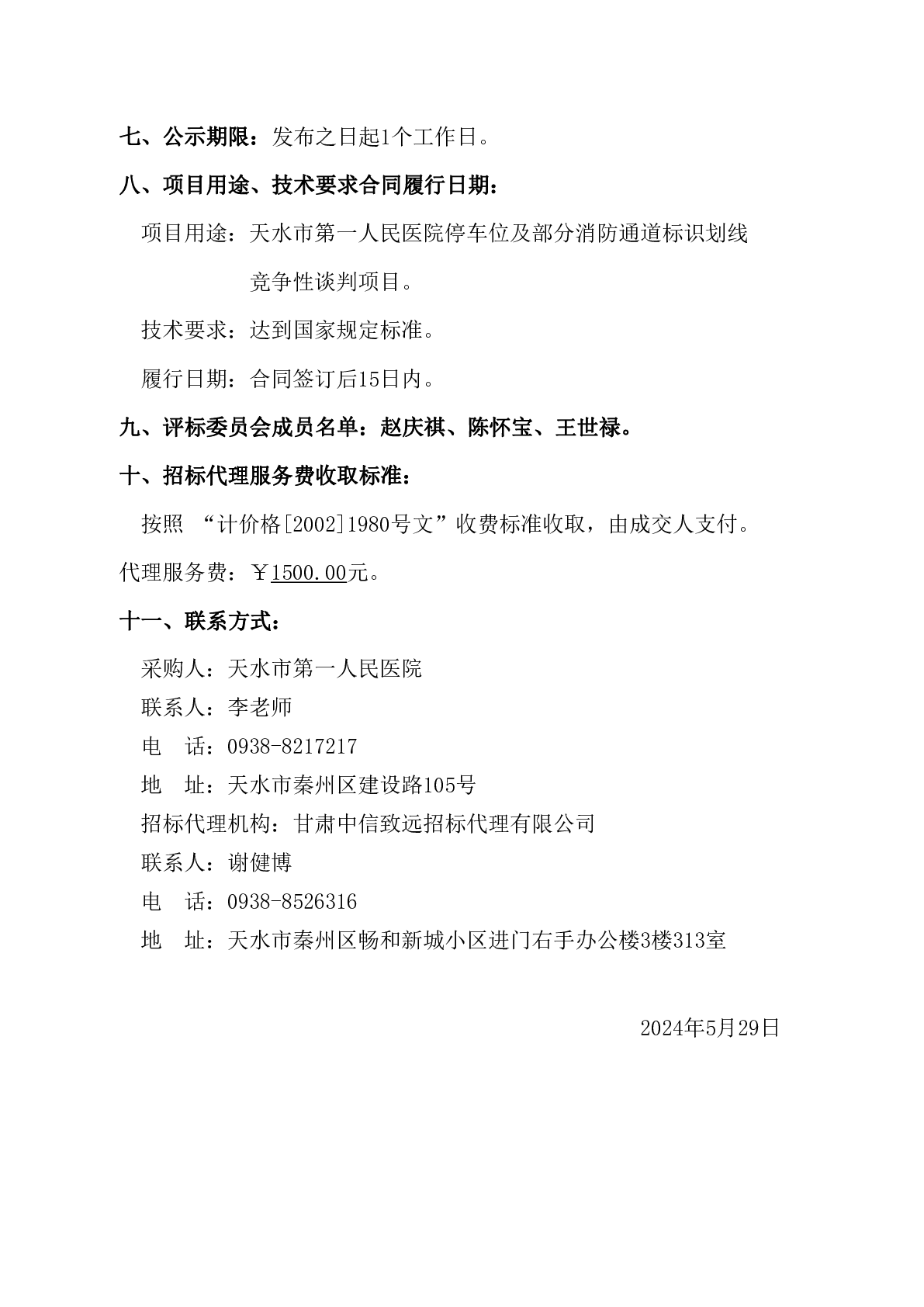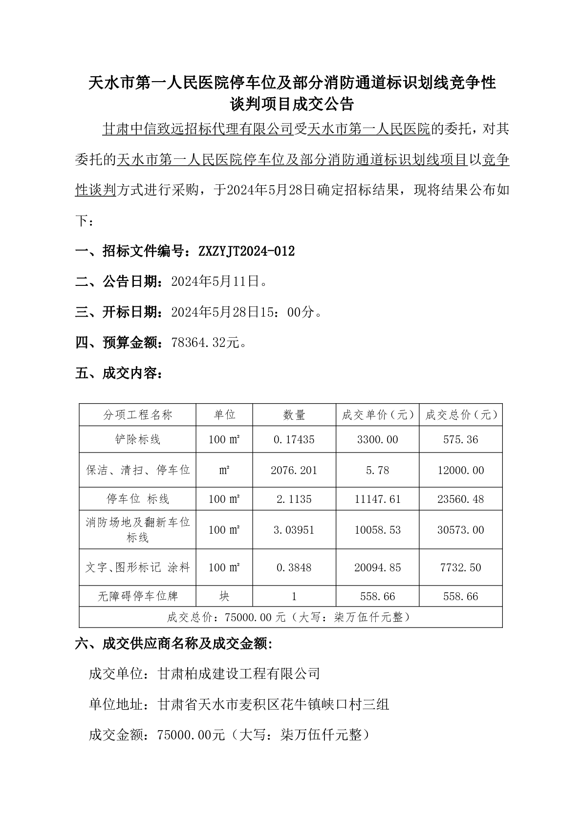 天水市第一人民医院停车位及部分消防通道标识划线竞争性谈判项目成交公告