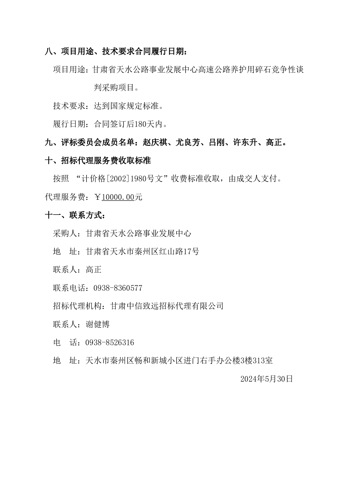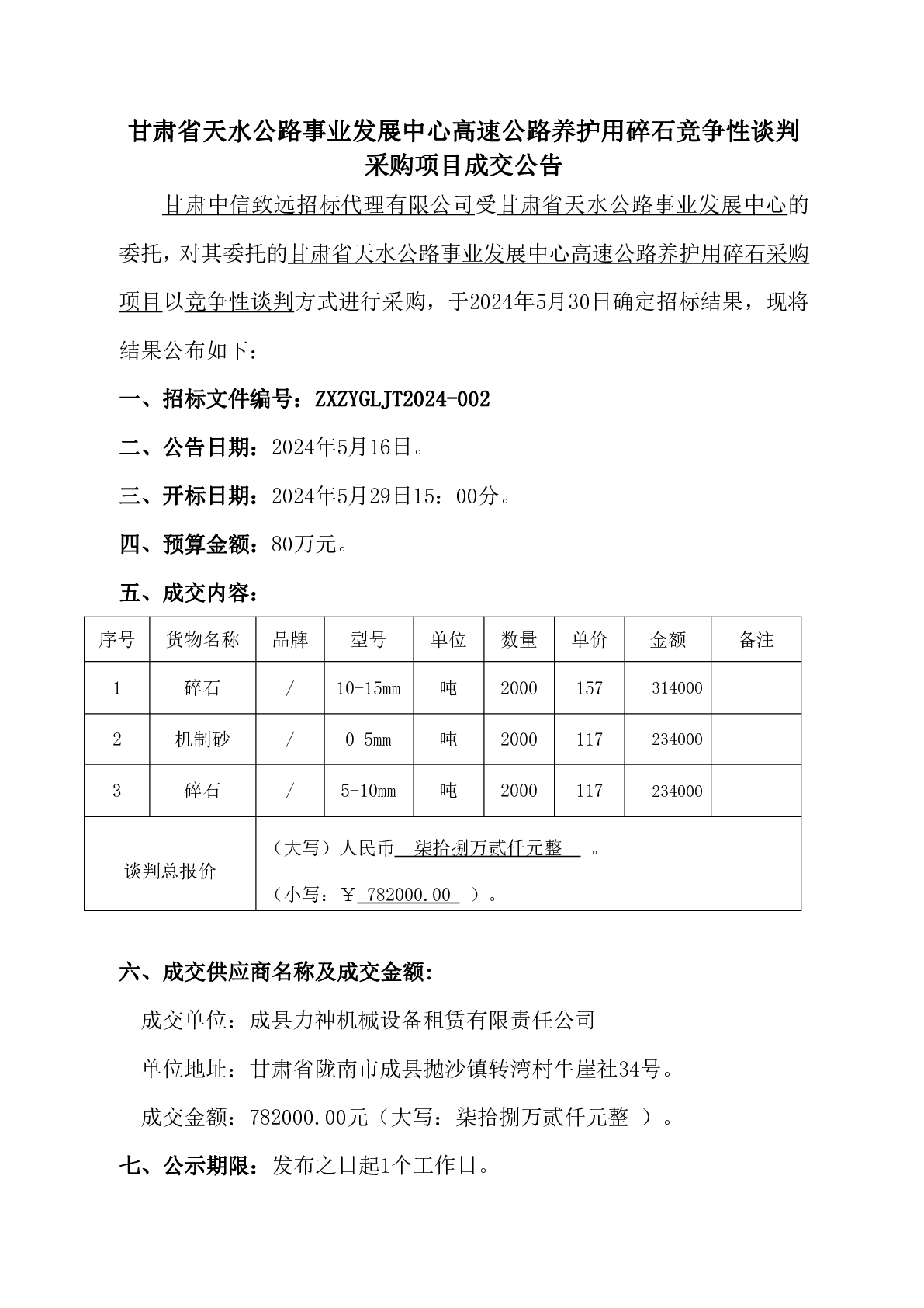 甘肃省天水公路事业发展中心高速公路养护用碎石竞争性谈判采购项目成交公告