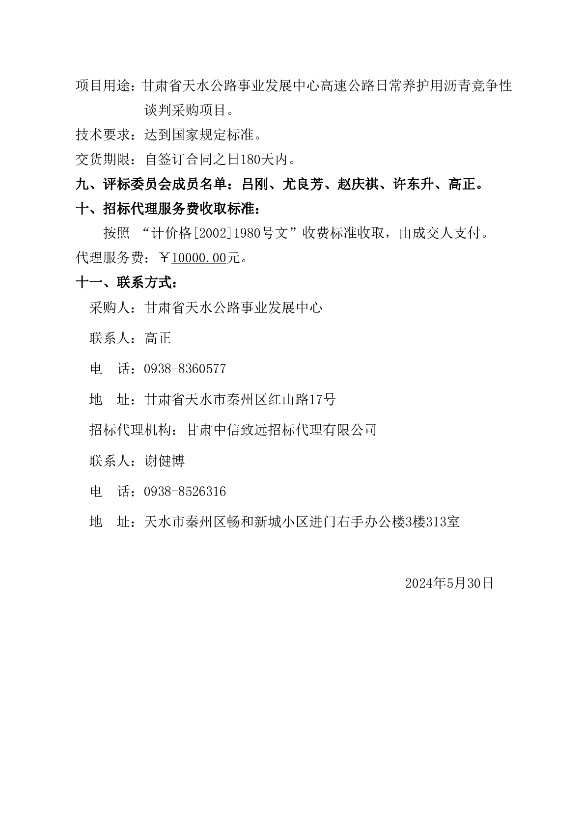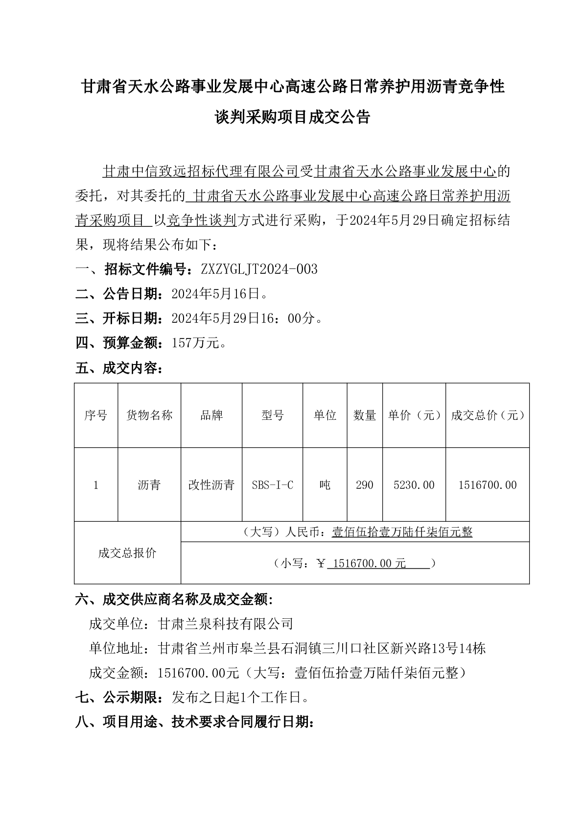 甘肃省天水公路事业发展中心高速公路日常养护用沥青竞争性谈判采购项目成交公告