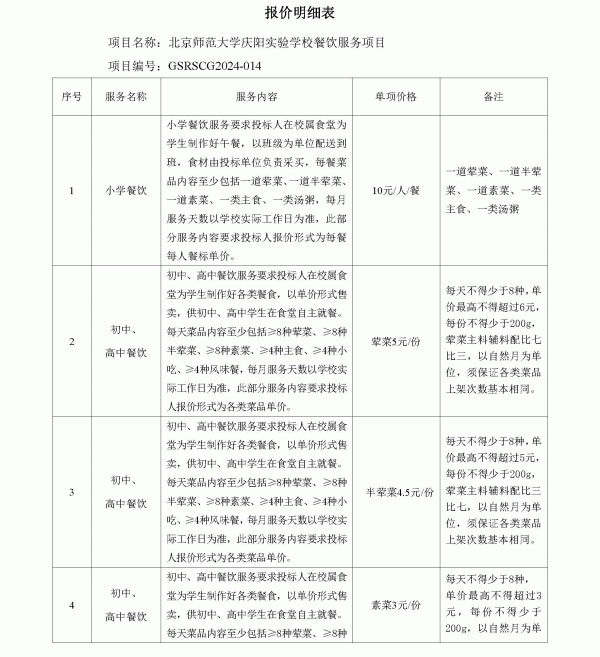 北京师范大学庆阳实验学校餐饮服务项目成交公告