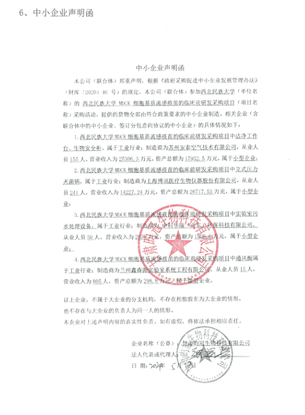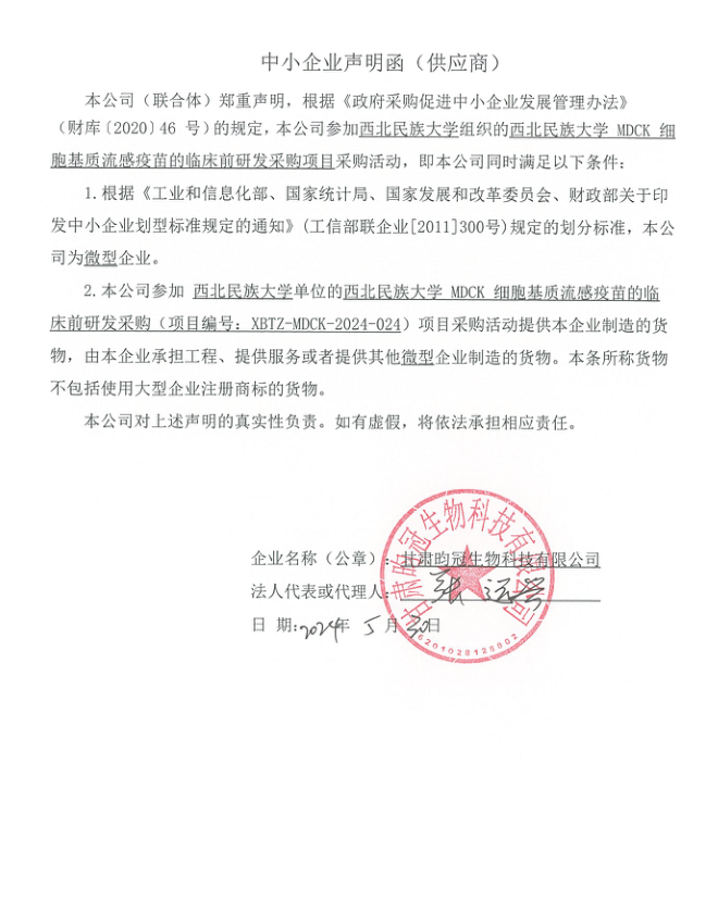 西北民族大学MDCK细胞基质流感疫苗的临床前研发采购项目中标公告