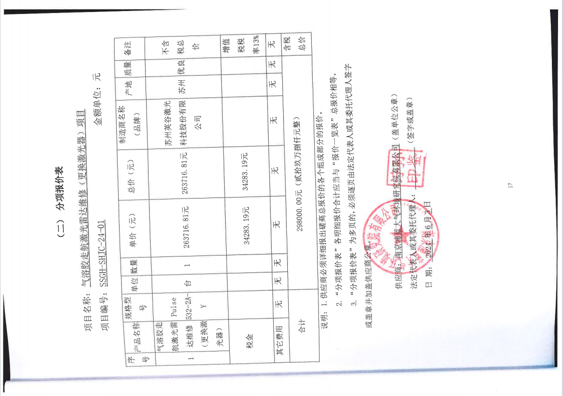二、项目名称:气溶胶走航激光雷达维修(更换激光器)项目