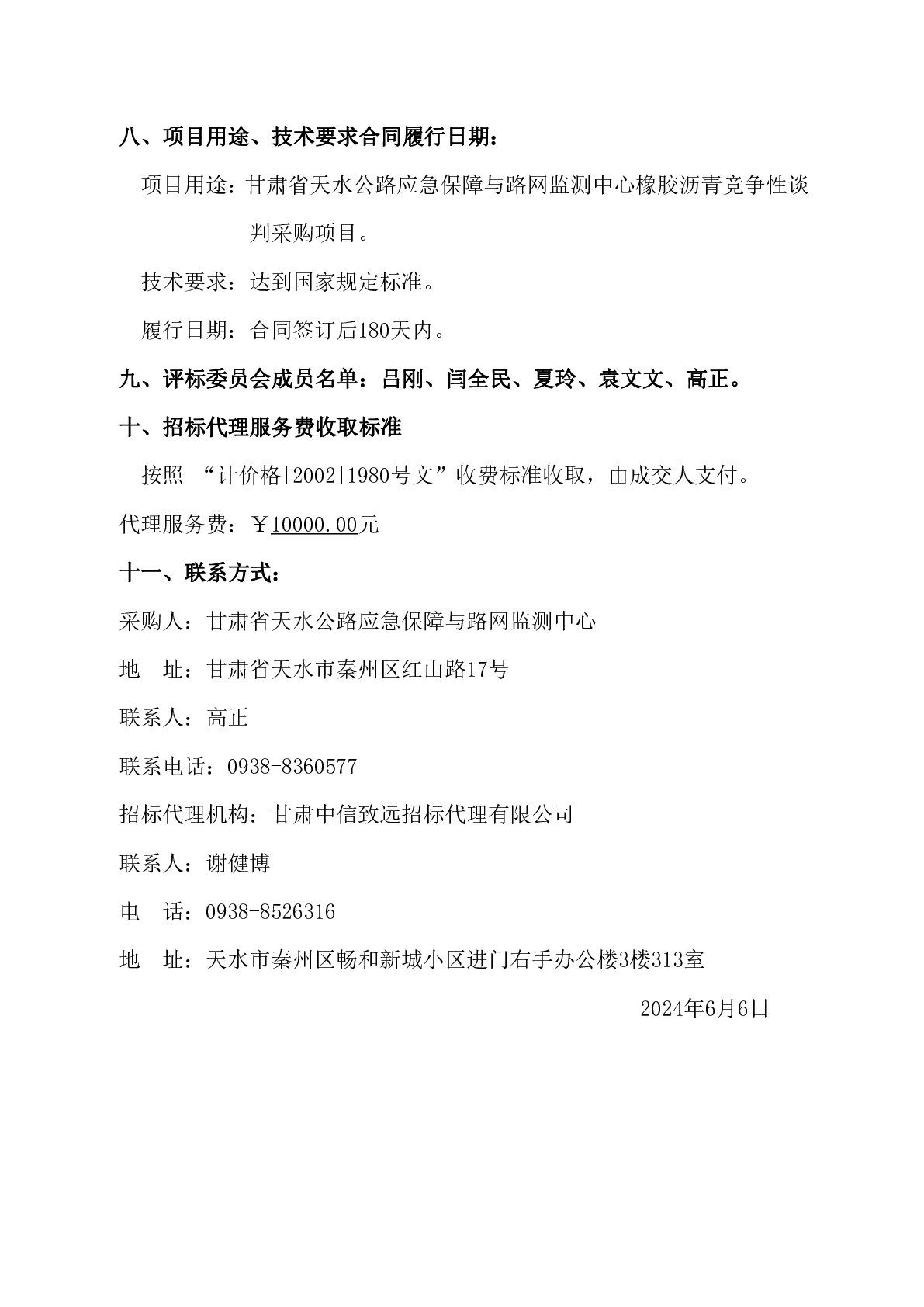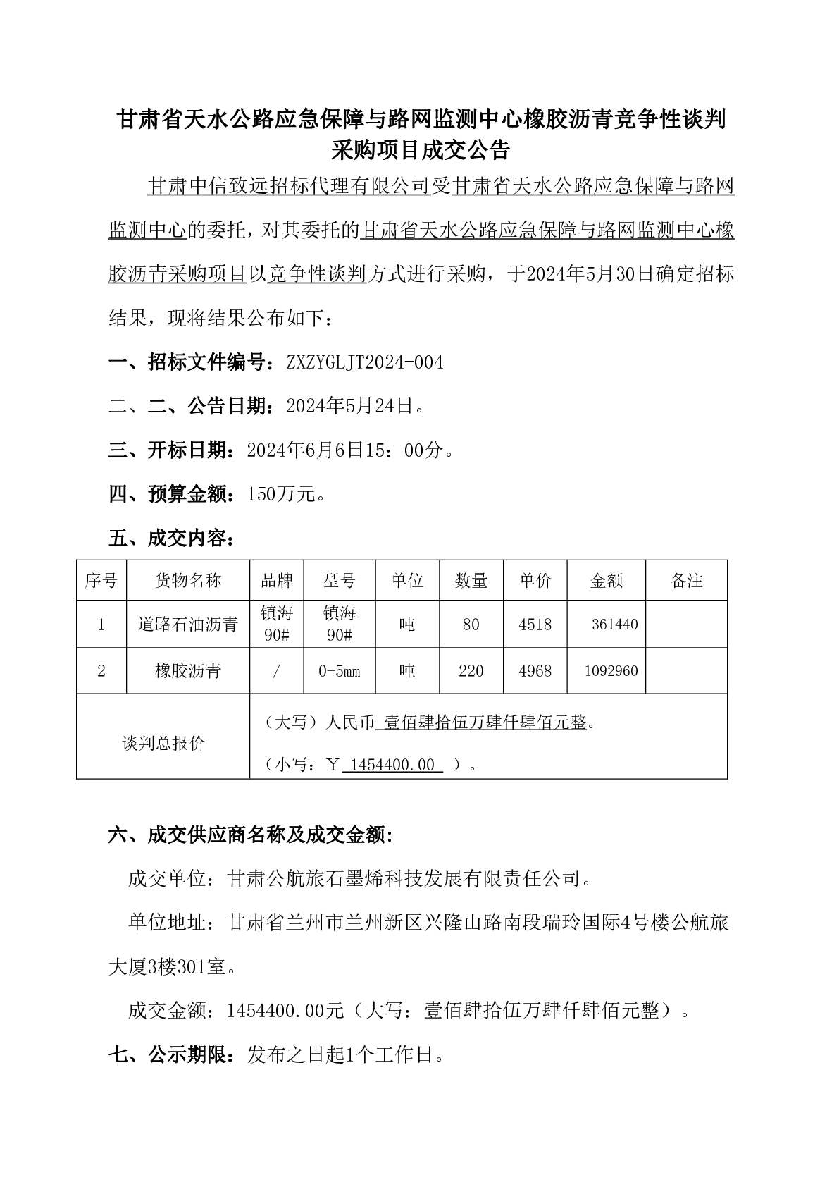 甘肃省天水公路应急保障与路网监测中心橡胶沥青竞争性谈判采购项目成交公告