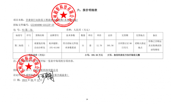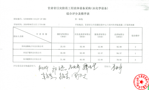 甘肃省巨灾防范工程流体设备采购(水化学设备)