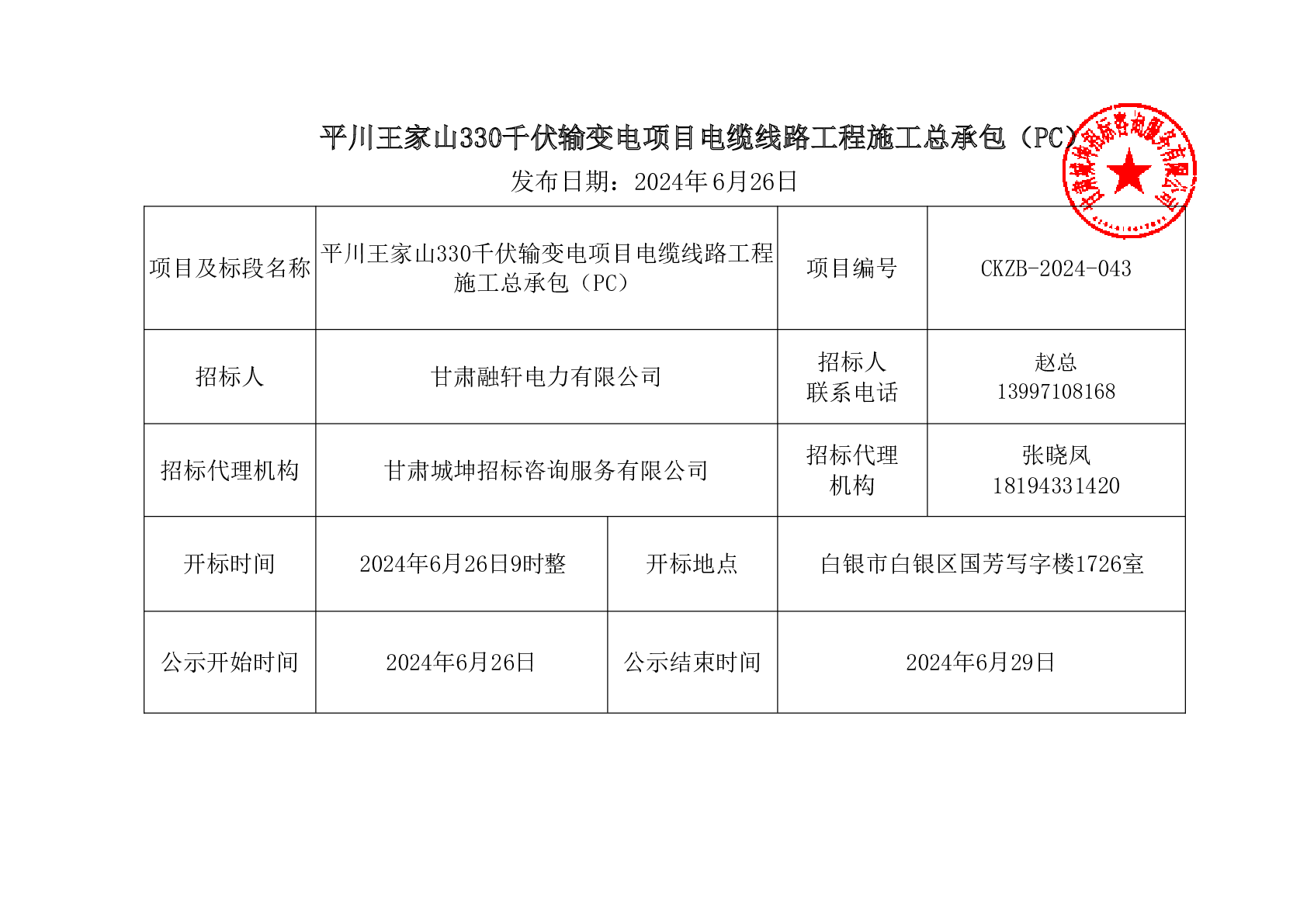 平川白银市王家山330千伏输变电项目电缆线路工程采购-施工总承包(PC)