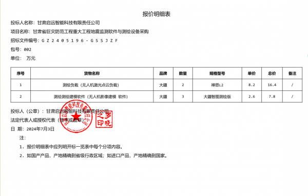 甘肃启远智能科技有限责任公司 | 详见附件 | 详见附件 | 详见附件 | 详见附件 | 详见附件 |