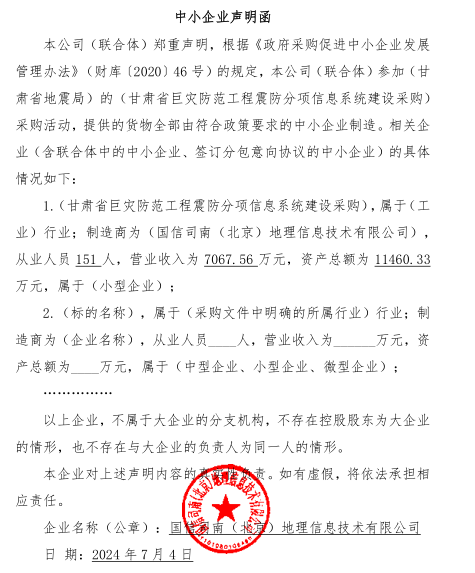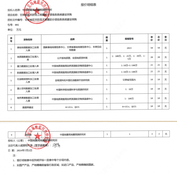 甘肃省巨灾防范工程震防分项信息系统建设采购