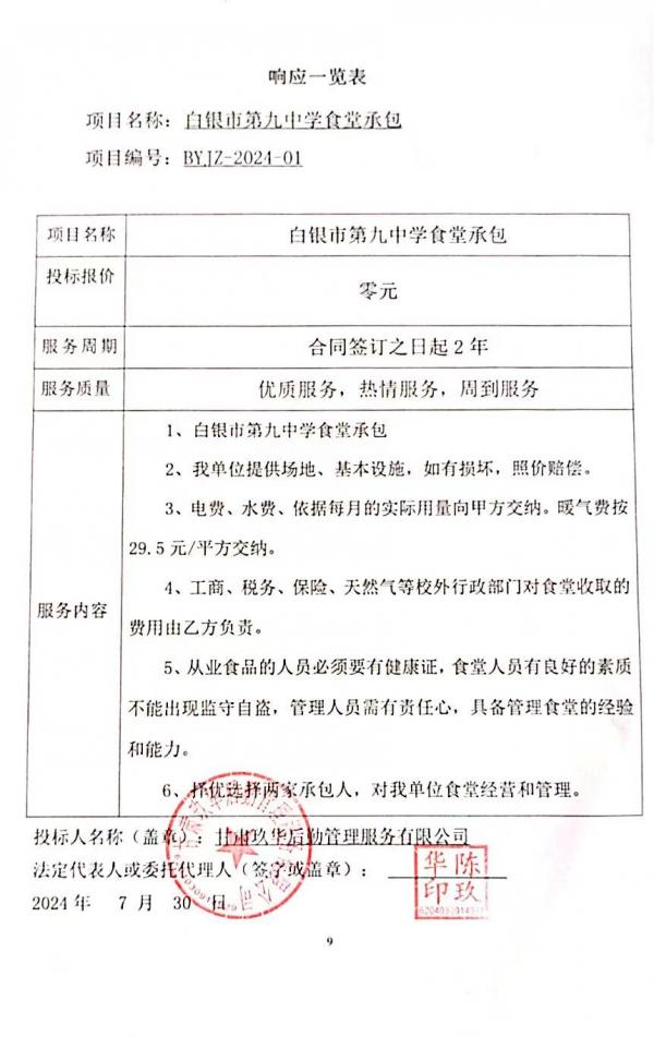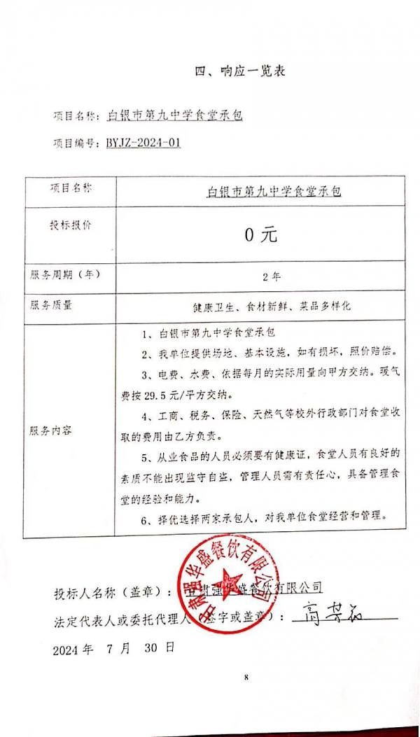 名称:白银市第九中学食堂承包 服务要求:详见征集文件 服务范围:白银市第九中学 服务时间:2年 服务标准:合格 |