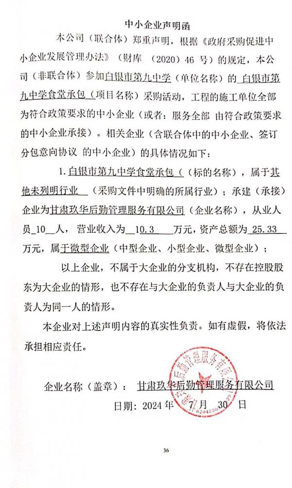 供应商名称:甘肃玖华后勤管理服务有限公司