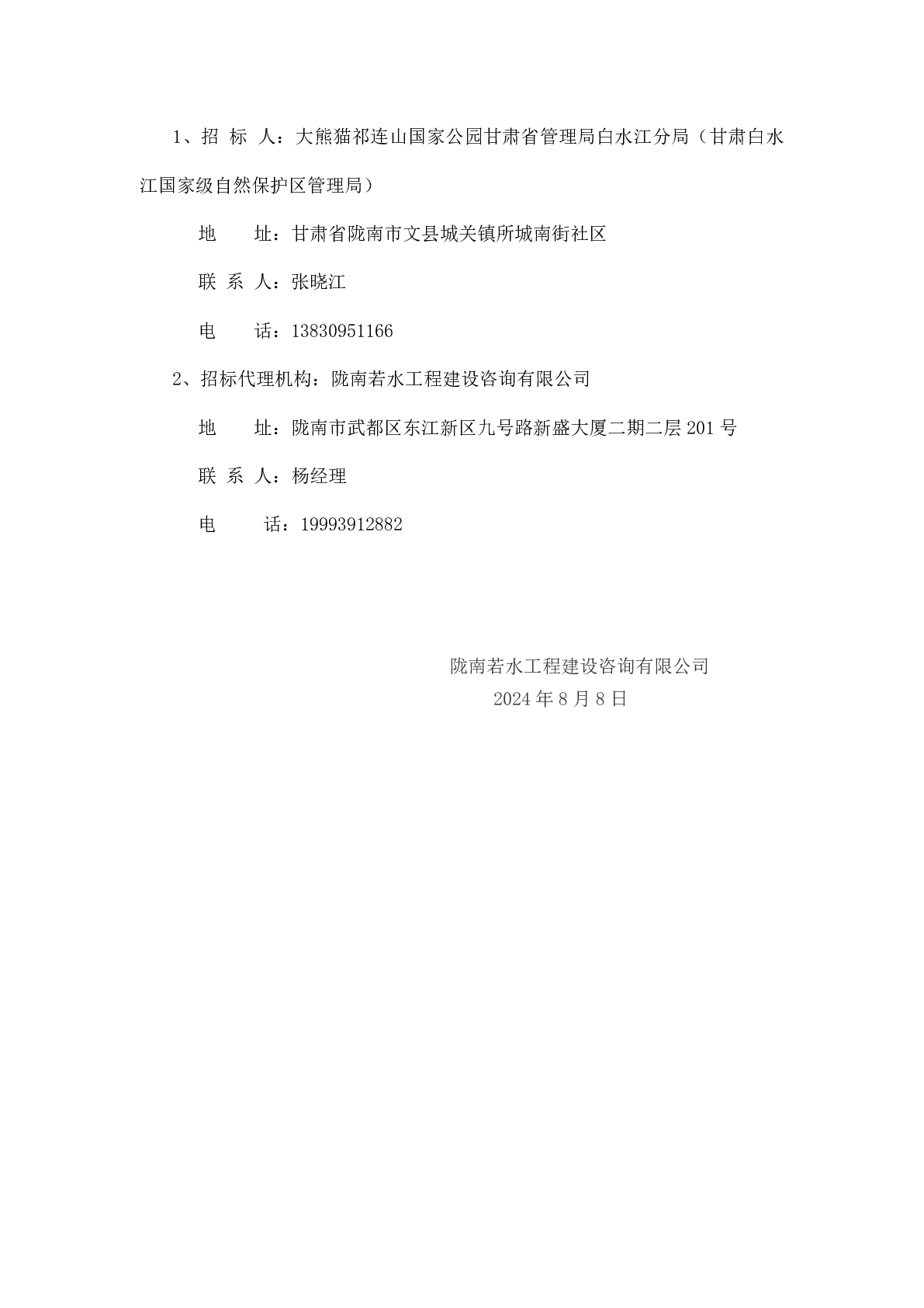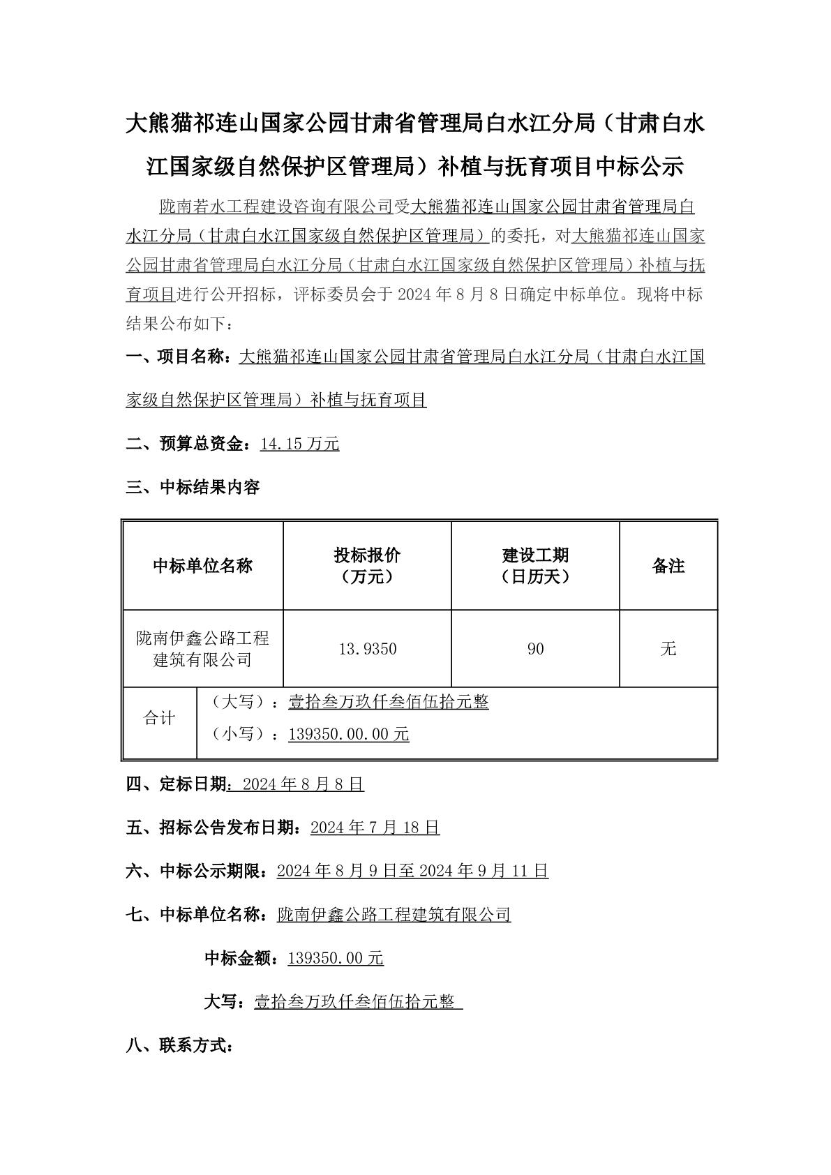 大熊猫祁连山国家公园甘肃省管理局白水江分局(甘肃白水江国家级自然保护区管理局)补植与抚育项目中标公示
