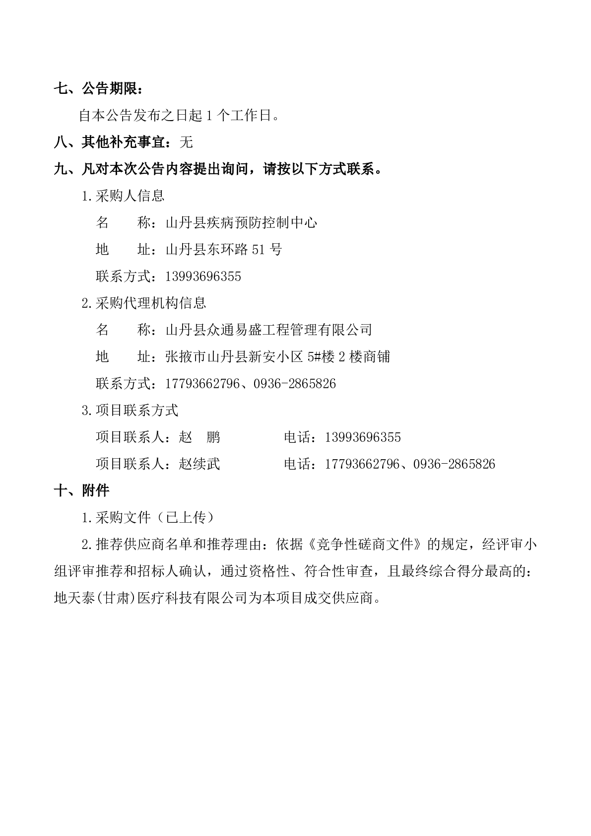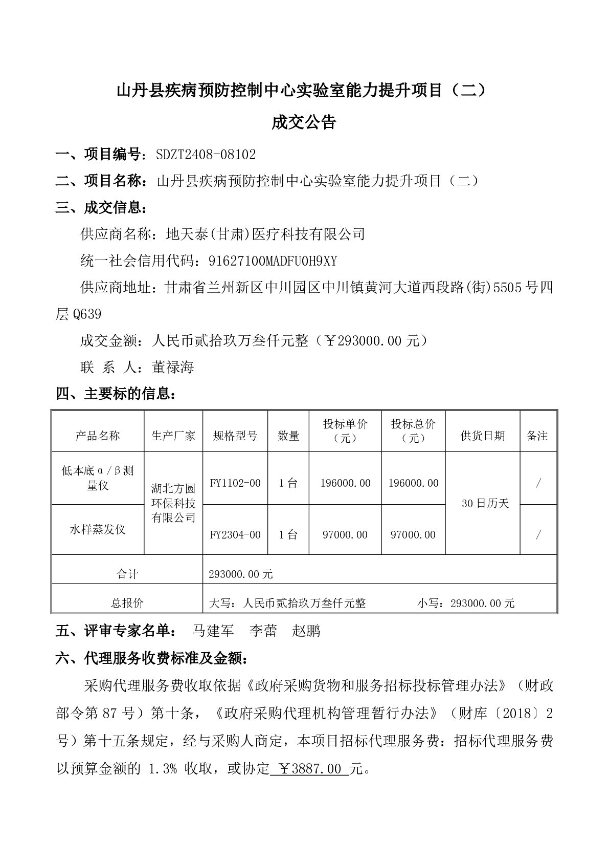 山丹县疾病预防控制中心实验室能力提升项目(二)成交公告