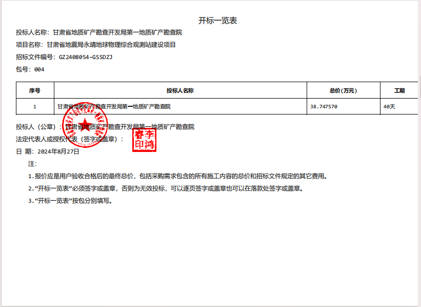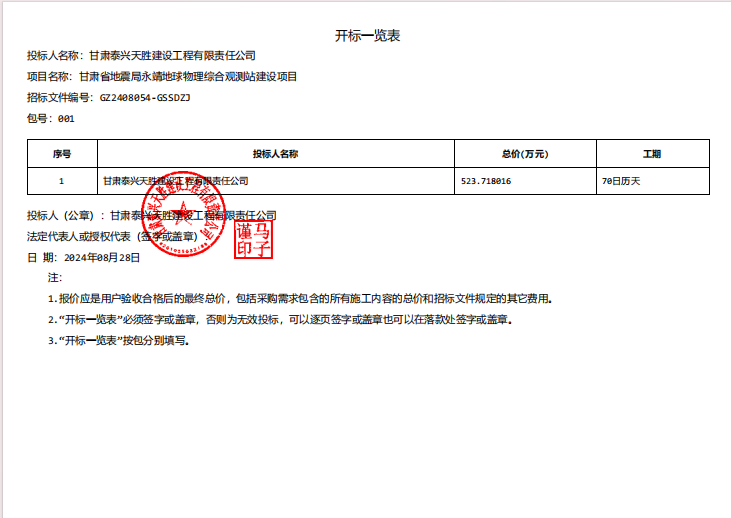 甘肃省招标中心有限公司 2024 年 8 月 28 日