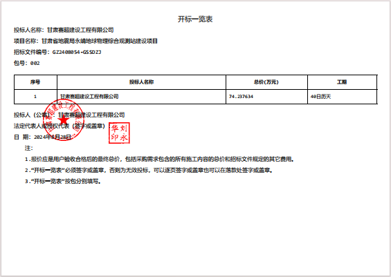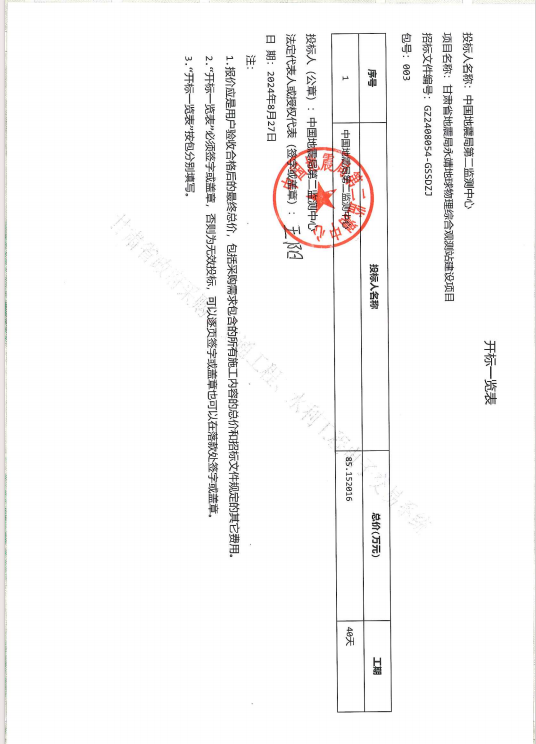 甘肃省招标中心有限公司受甘肃省地震局的委托,对甘肃省地震局中心站运 行环境建设项目以公开招标的方式进行采购,评标委员会于 2024 年 8 月28日 确定评标结果,现将评标结果公布如下: