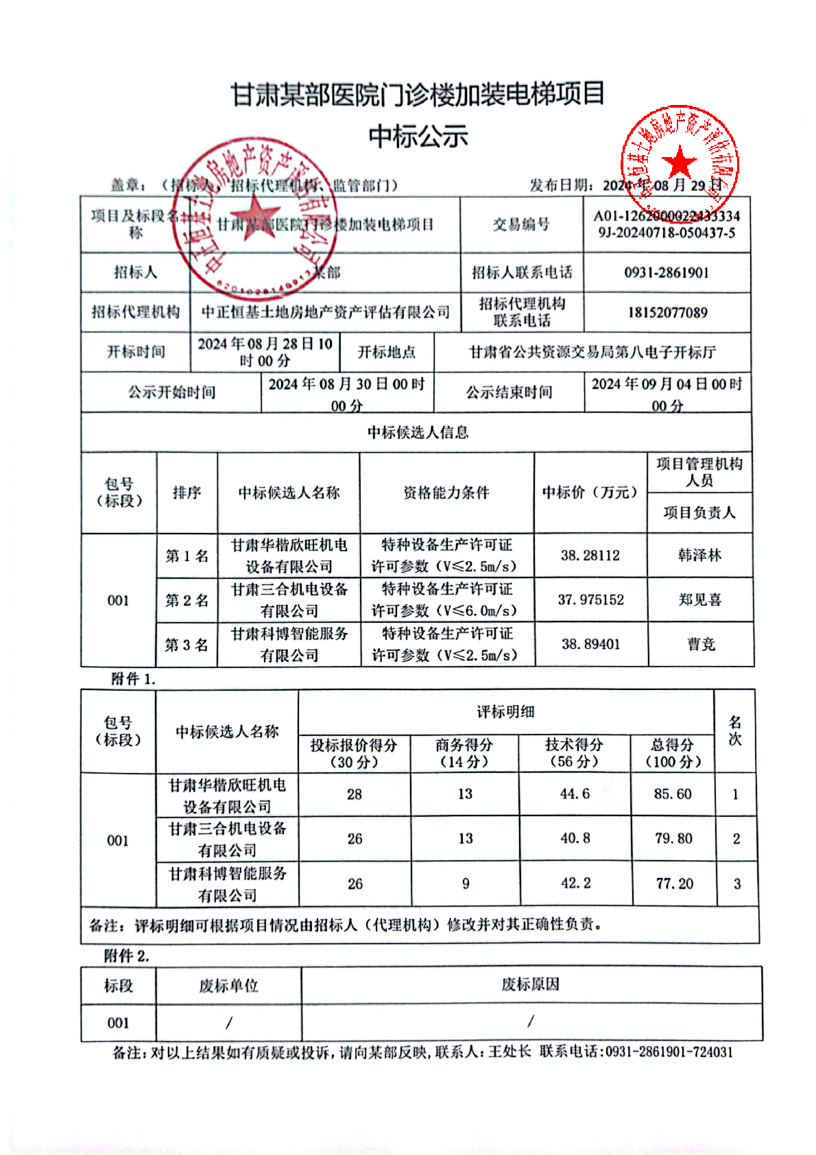 甘肃某部医院门诊楼加装电梯项目中标公示