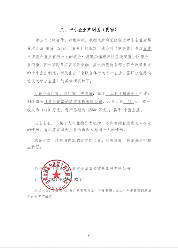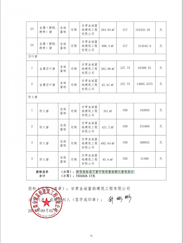 中标供应商:甘肃金诚富柏建筑工程有限公司