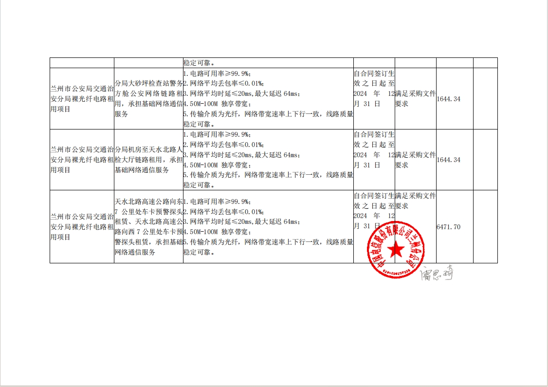 兰州市公安局交通治安分局裸光纤电路租用项目