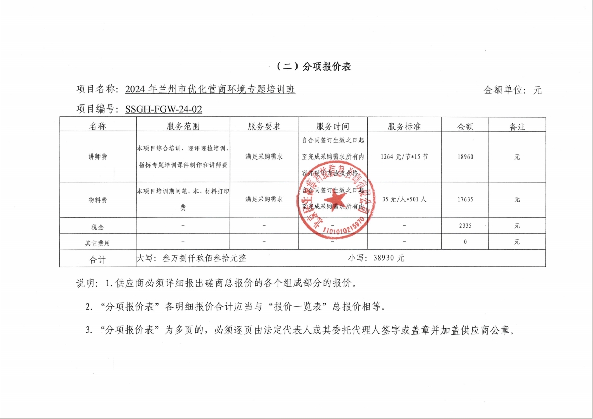 2024年兰州市优化营商环境专题培训班成交结果公告