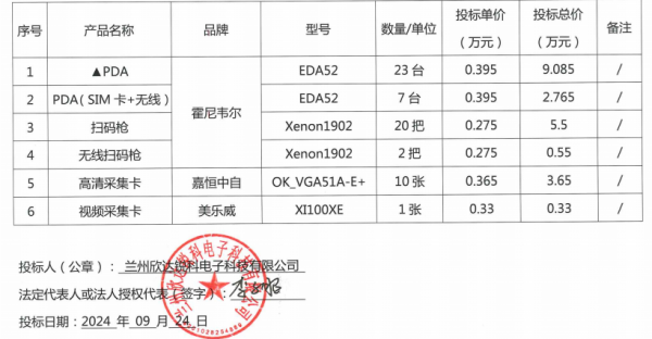 中标人名称:兰州欣达锐科电子科技有限公司