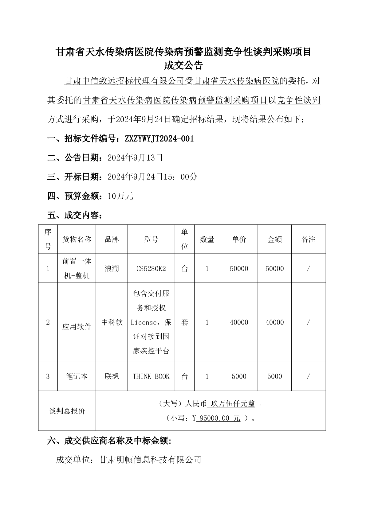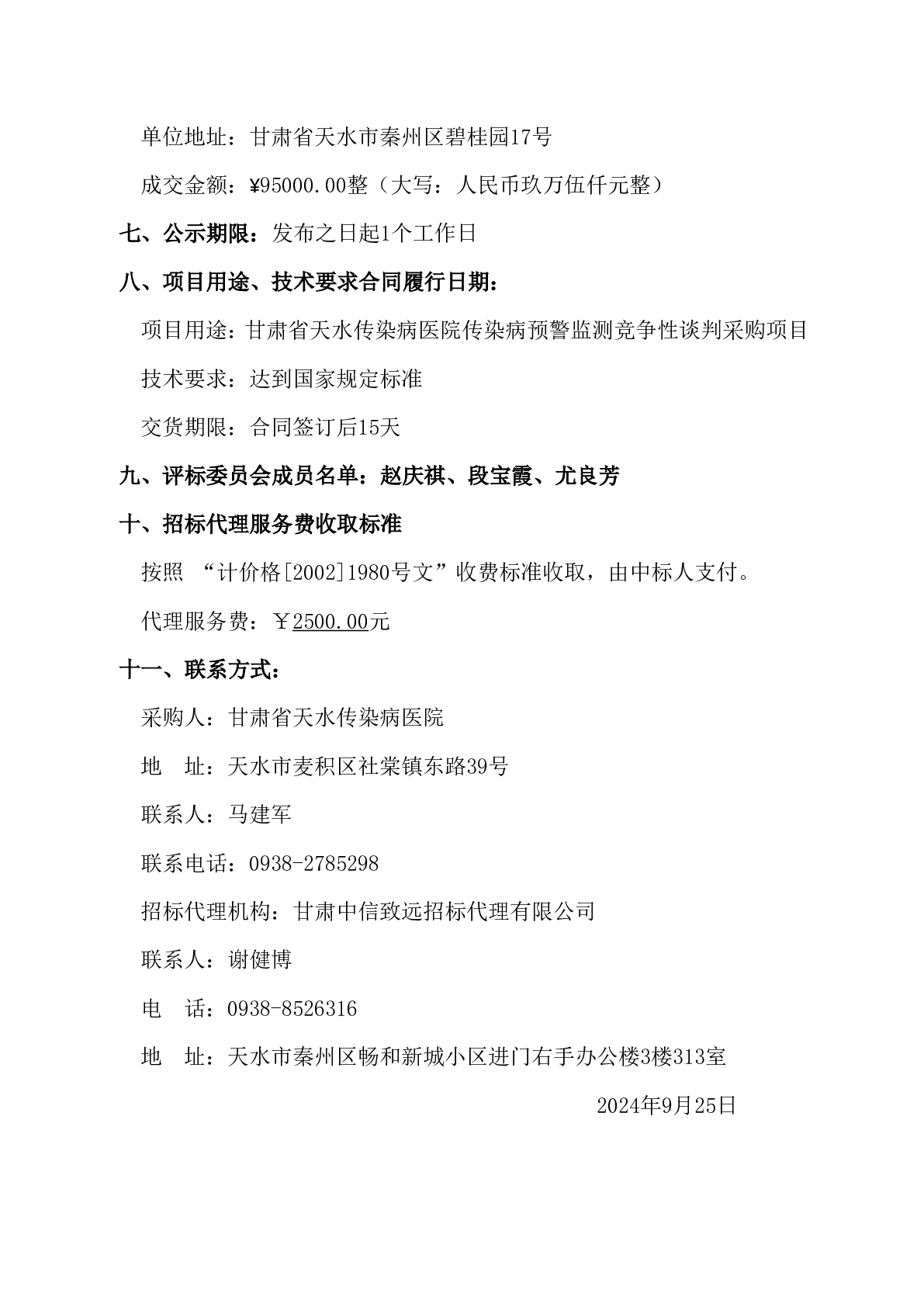 甘肃省天水传染病医院传染病预警监测竞争性谈判采购项目成交公告