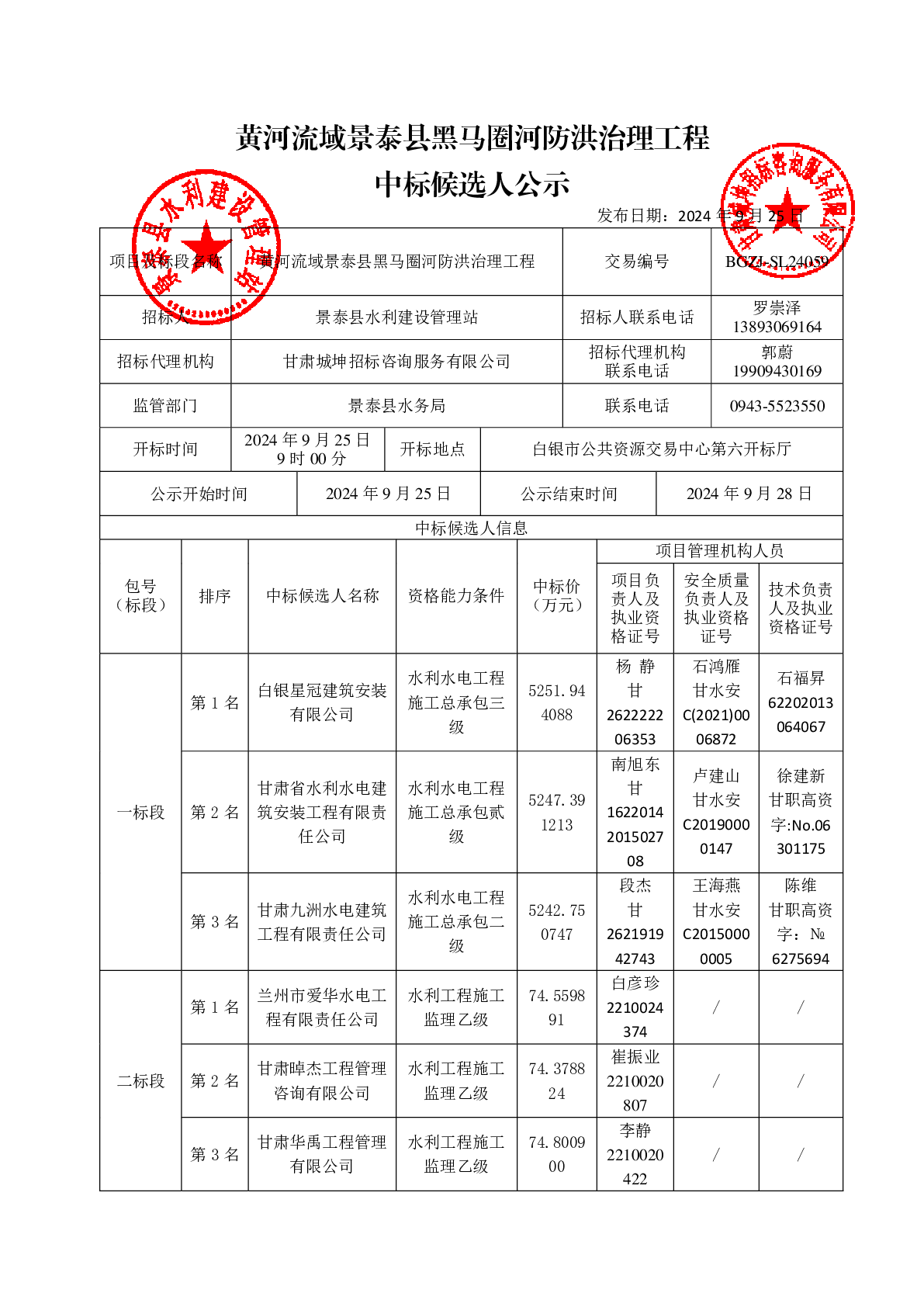 文县2024年(第二批衔接资金)农业产业基础设施建设项目中标公示