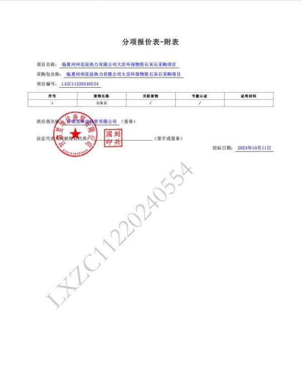 项目名称:临夏河州花辰热力有限公司大宗环保物资石灰石采购项目
