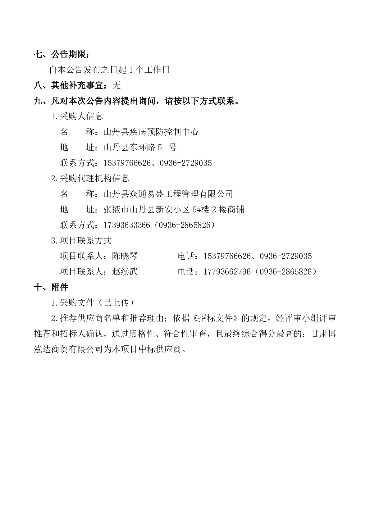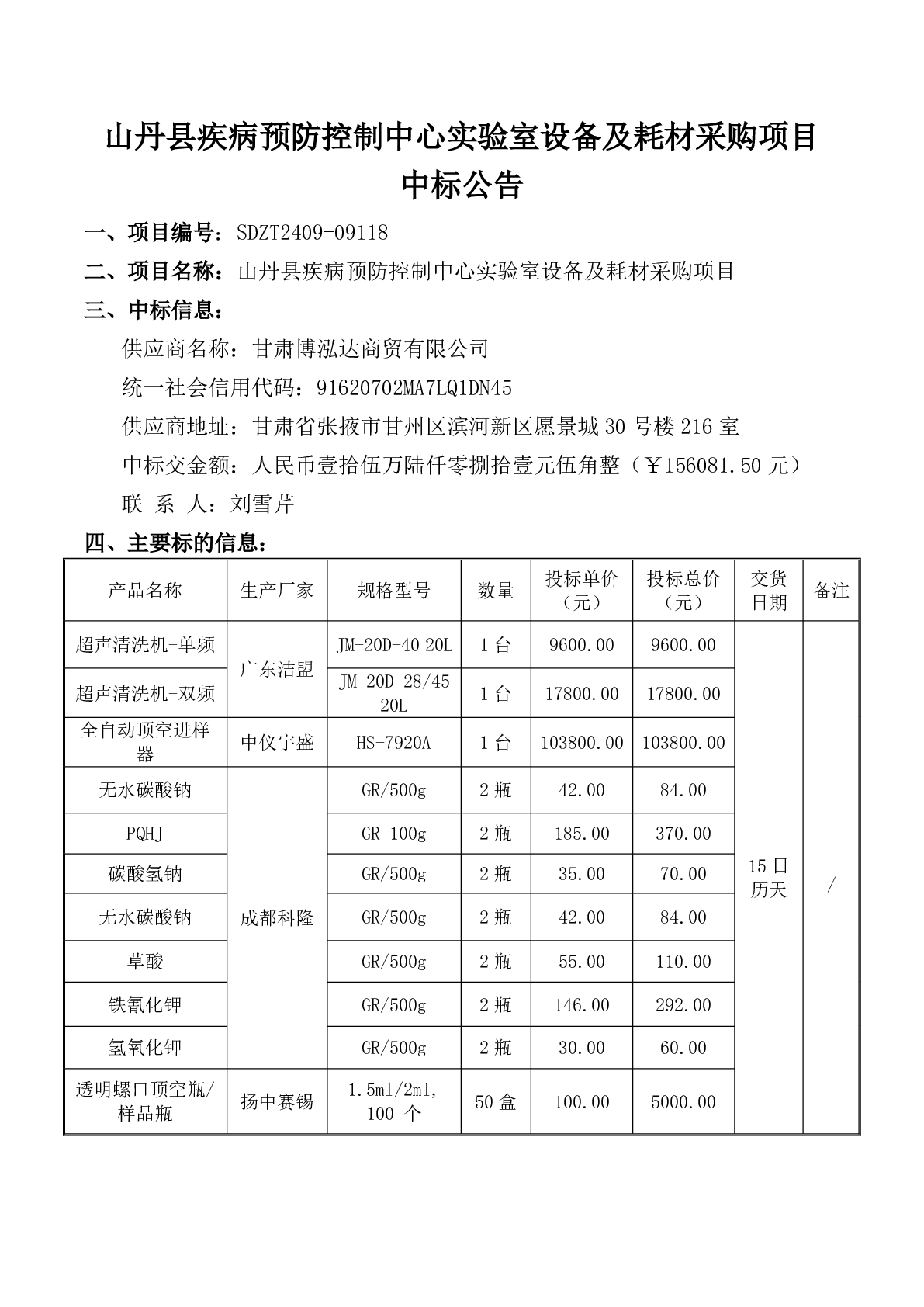 山丹县疾病预防控制中心实验室设备及耗材采购项目中标公告