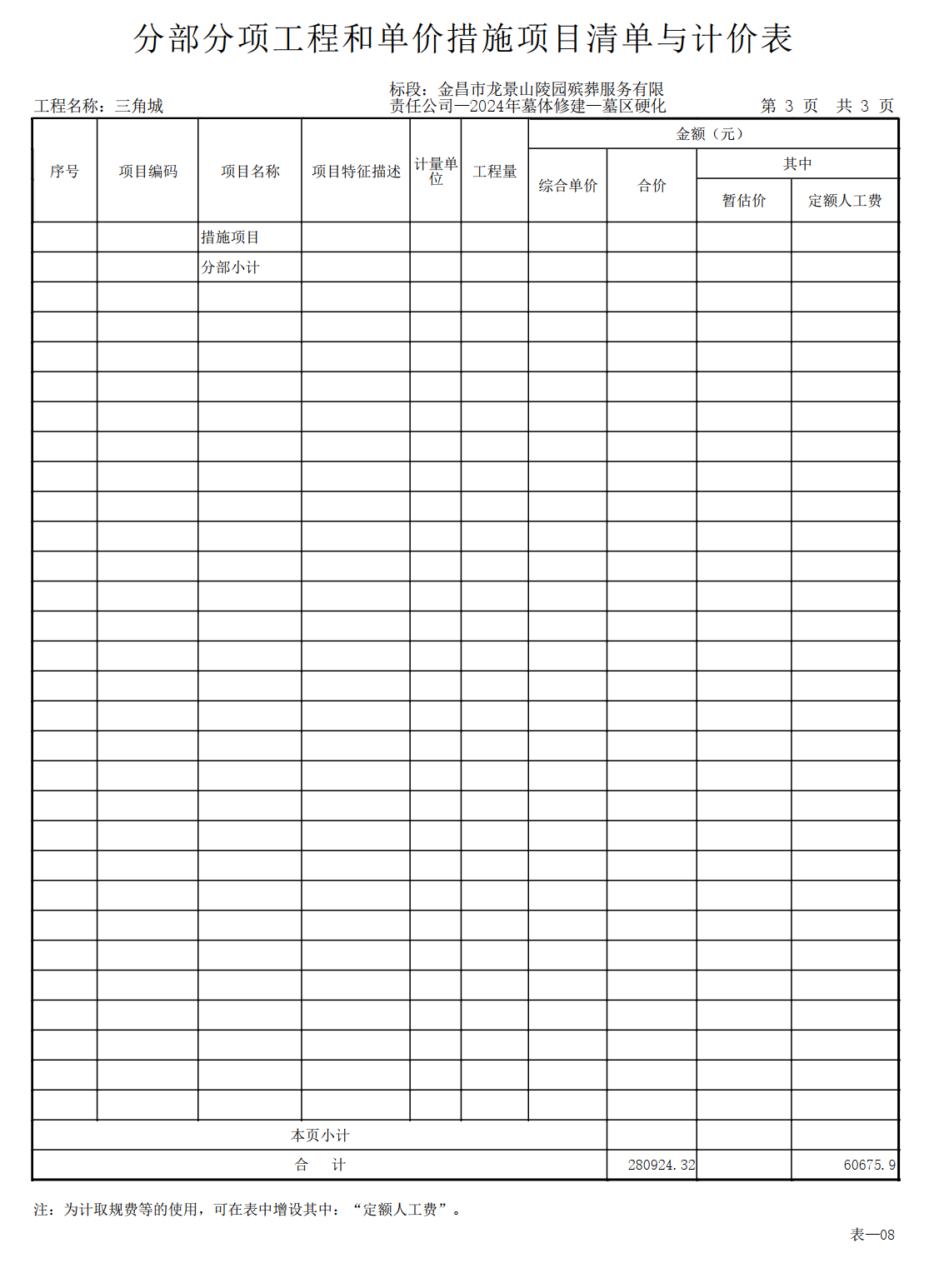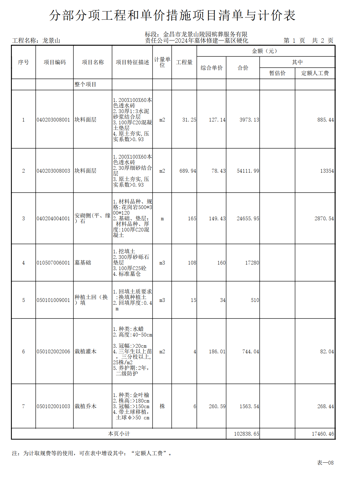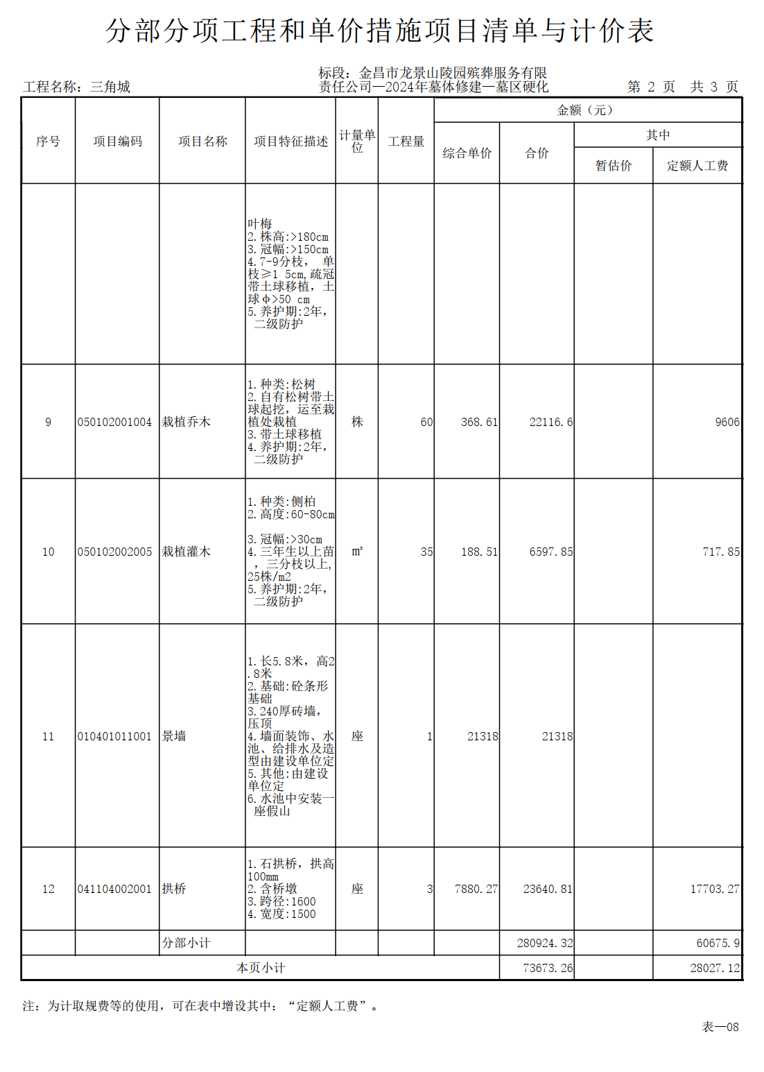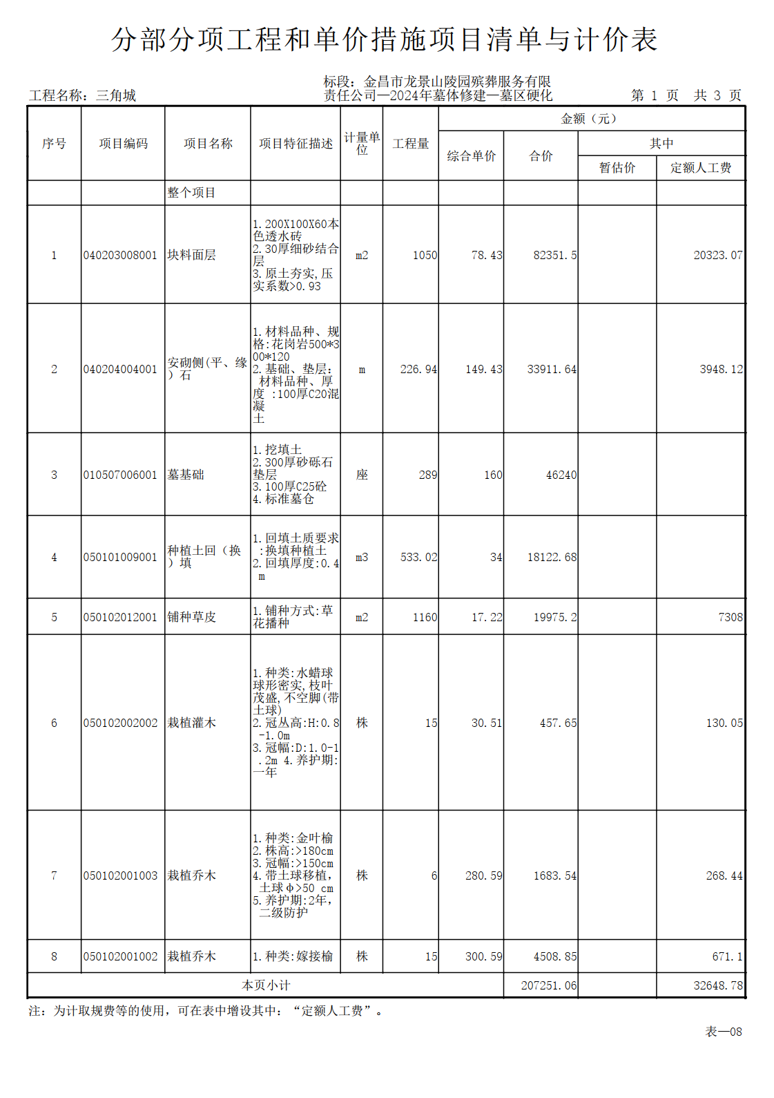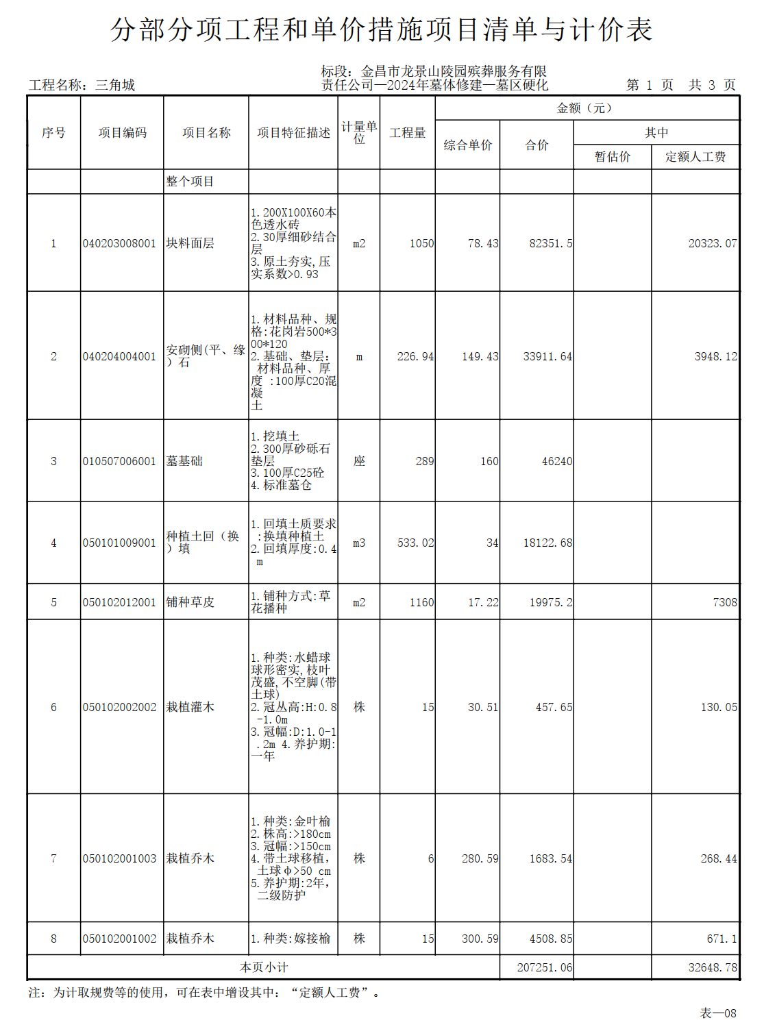 三、预算总金额:397.7072万元。其中:墓体采购安装项目,预算金额349.82万元;墓区场地平整硬化及景观绿化项目,预算金额47.8872万元。