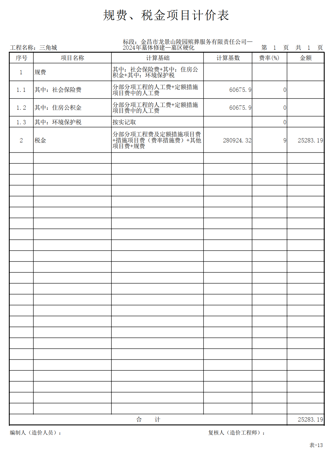 甘肃鸿运项目管理咨询有限公司受金昌市龙景山陵园殡葬服务有限责任公司委托对“金昌市龙景山陵园殡葬服务有限责任公司2024年墓体修建项目”以公开招标的方式进行招标,评标委员会于2024年10月22日确定中标结果,现将中标结果公示如下: