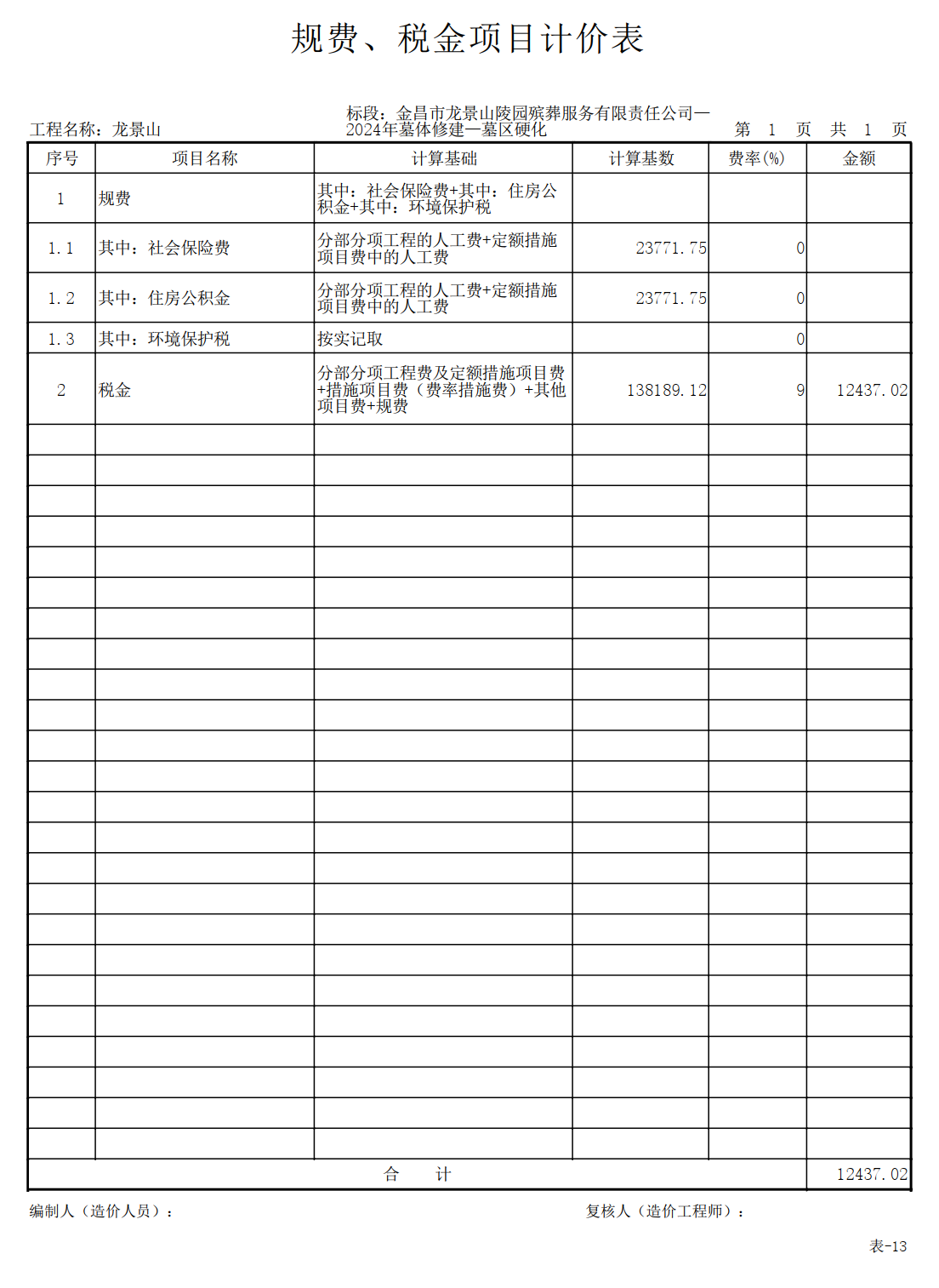 招标人:金昌市龙景山陵园殡葬服务有限责任公司