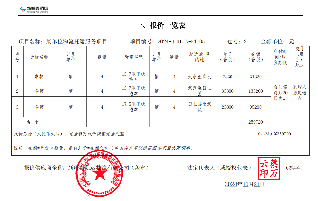 用低平板拖车采取一拖一的方式,从成都、石家庄、南京、桂林、宝鸡等地组织接领38辆车,需拖车37辆;用3辆4.2米箱货从嘉兴、昆山、广州、桂林、成都接领54套设备,其中嘉兴、昆山1辆4.2米箱货,广州、桂林1辆4.2米箱货、成都1辆4.2米箱货。